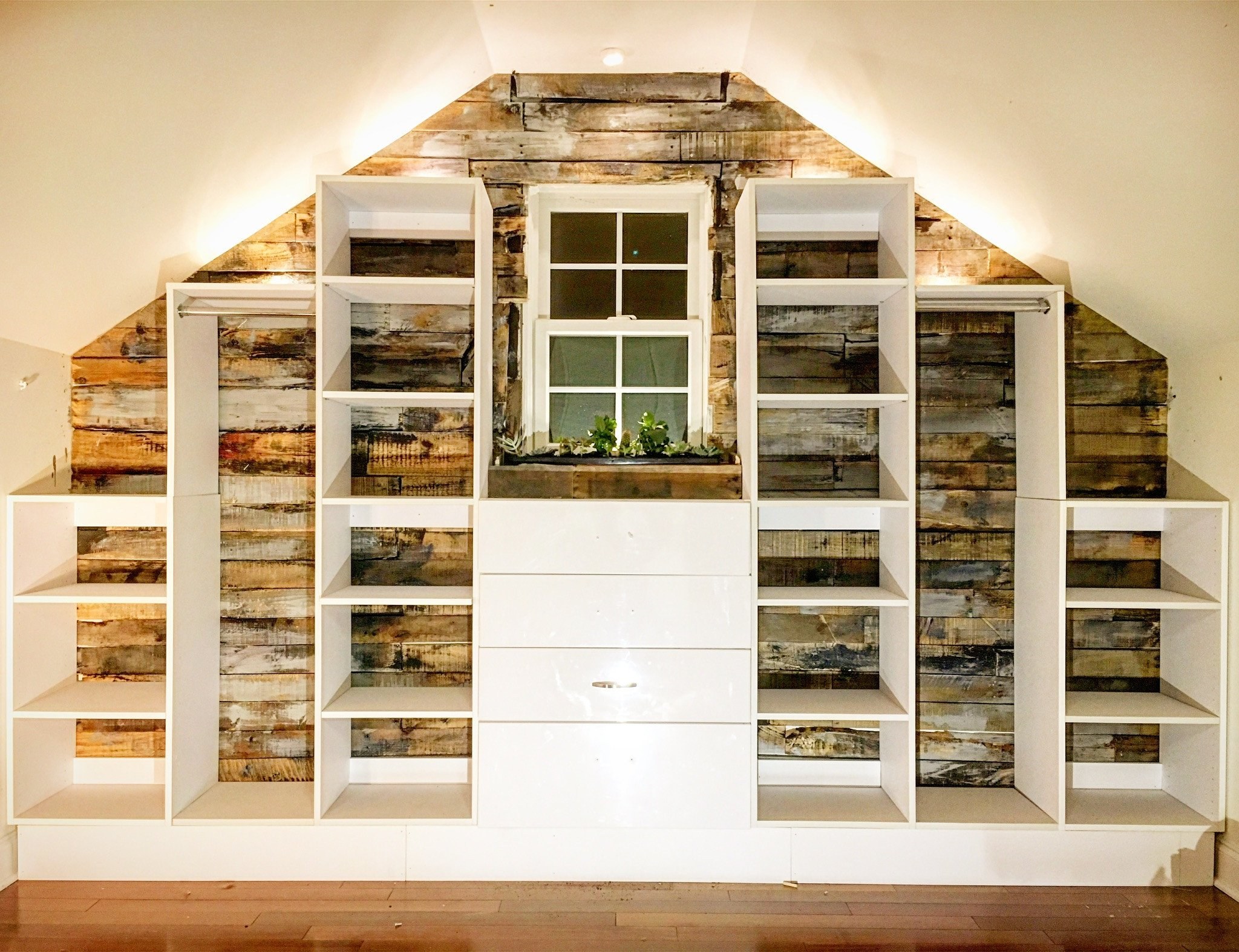 Стеллажи и шкафы на мансарде
