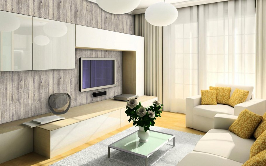 Зал гостиная в светлых тонах