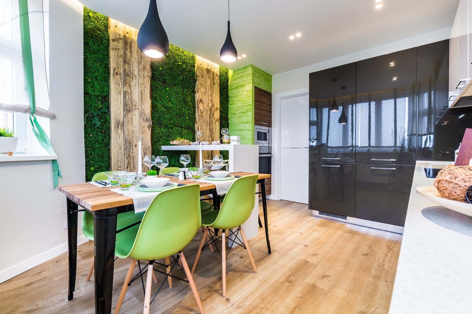 Интерьер зелёный экостиль