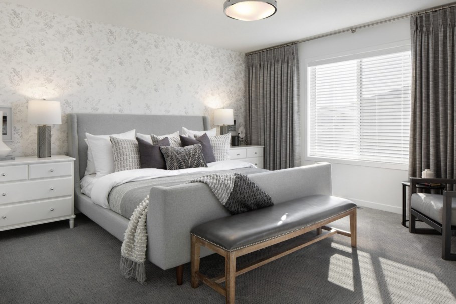 Серый цвет в интерьере спальни