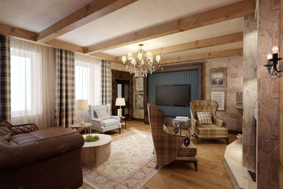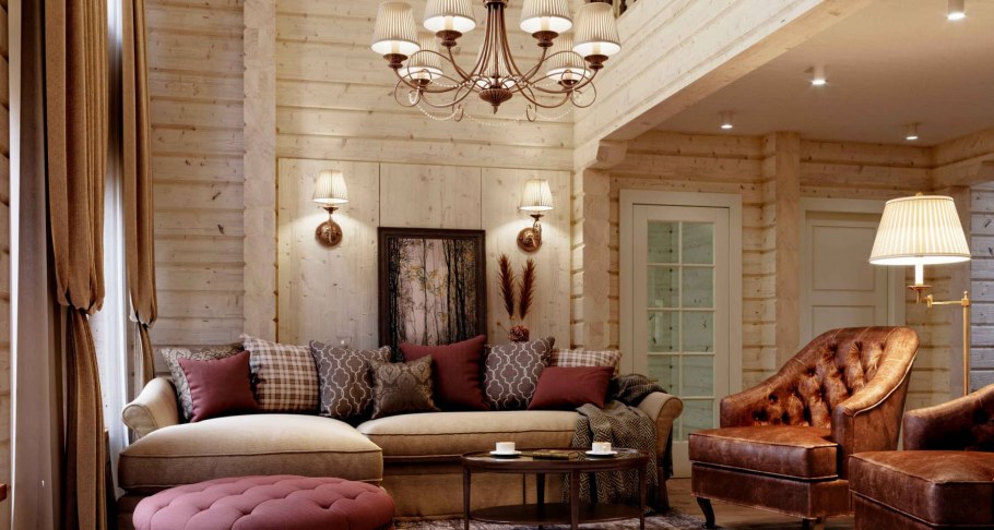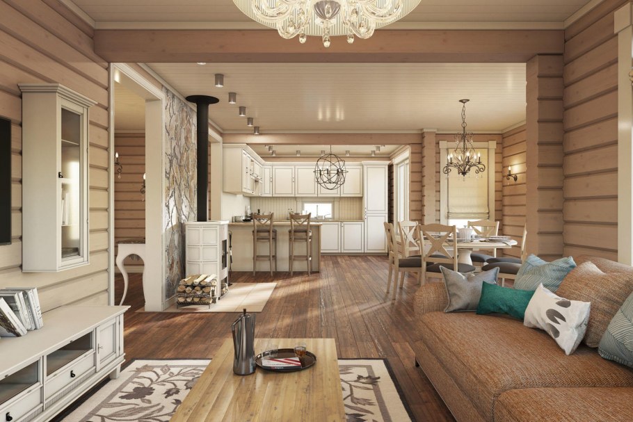 Дизайн гостиной в деревянном доме из бруса (53 фото)