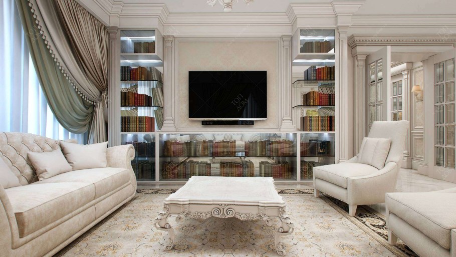 Цвет слоновой кости в интерьере гостиной