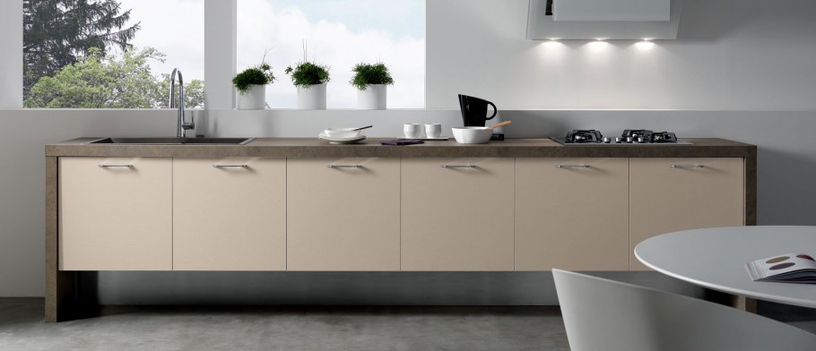 Кухня с подвесными нижними шкафами