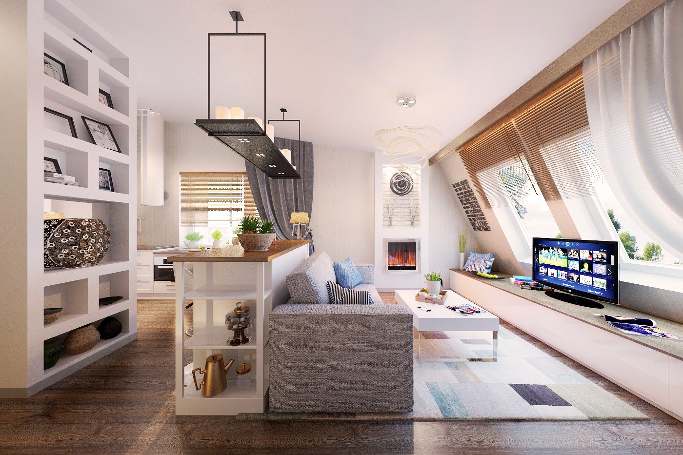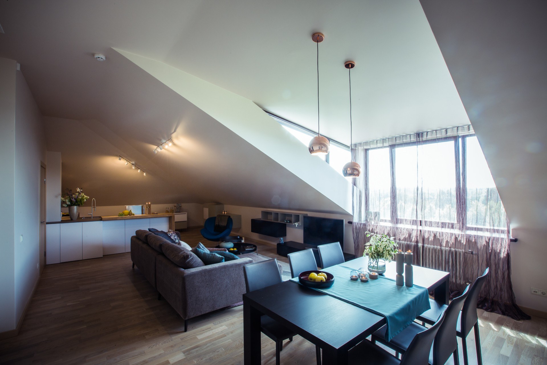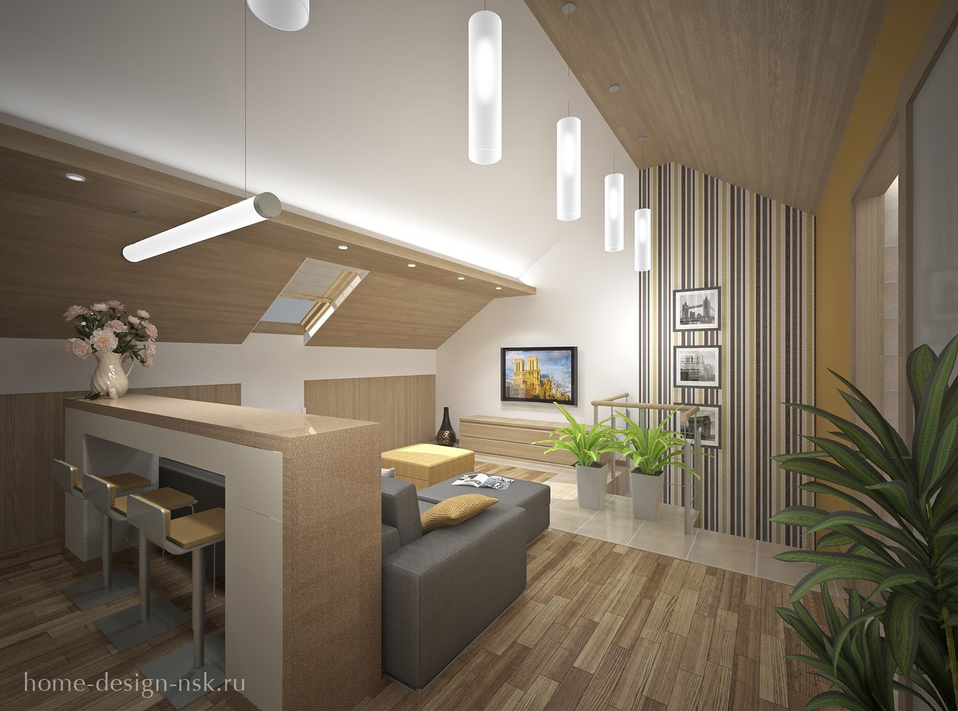 Кухня гостиная на мансардном этаже