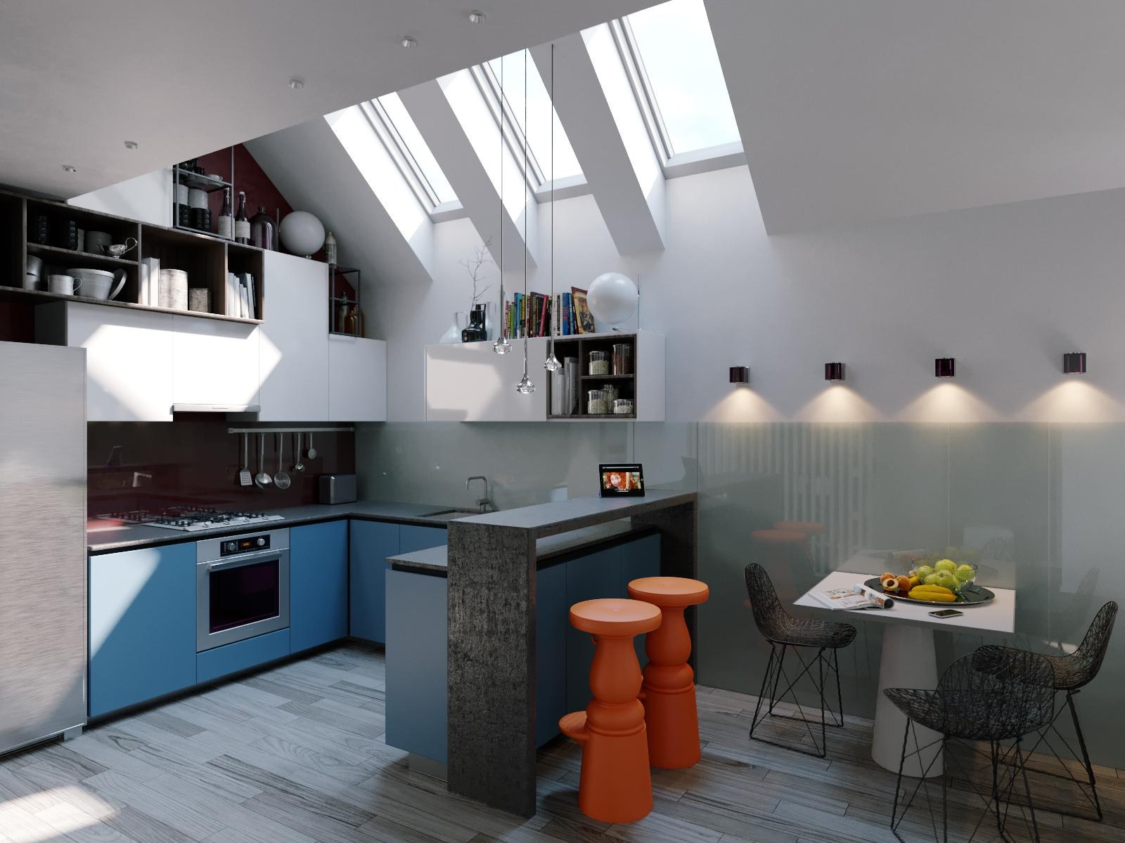Кухня на мансардном этаже