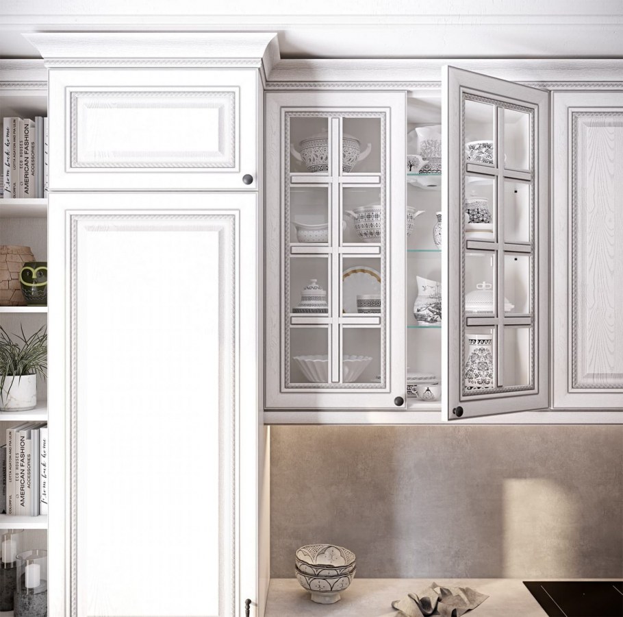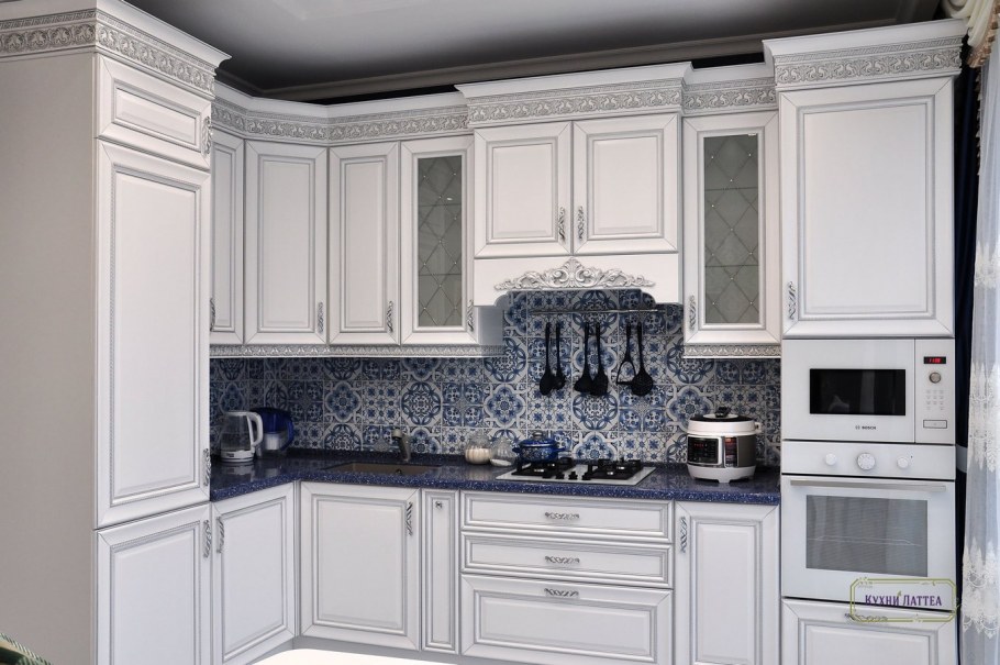 Белая кухня с патиной серебро
