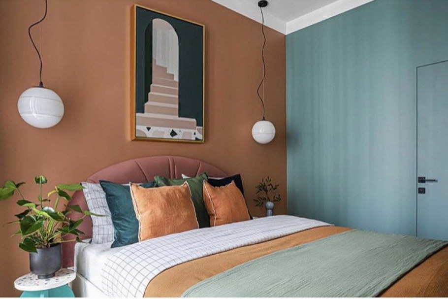 Интерьер спальни в современном стиле красный белый индийский стиль