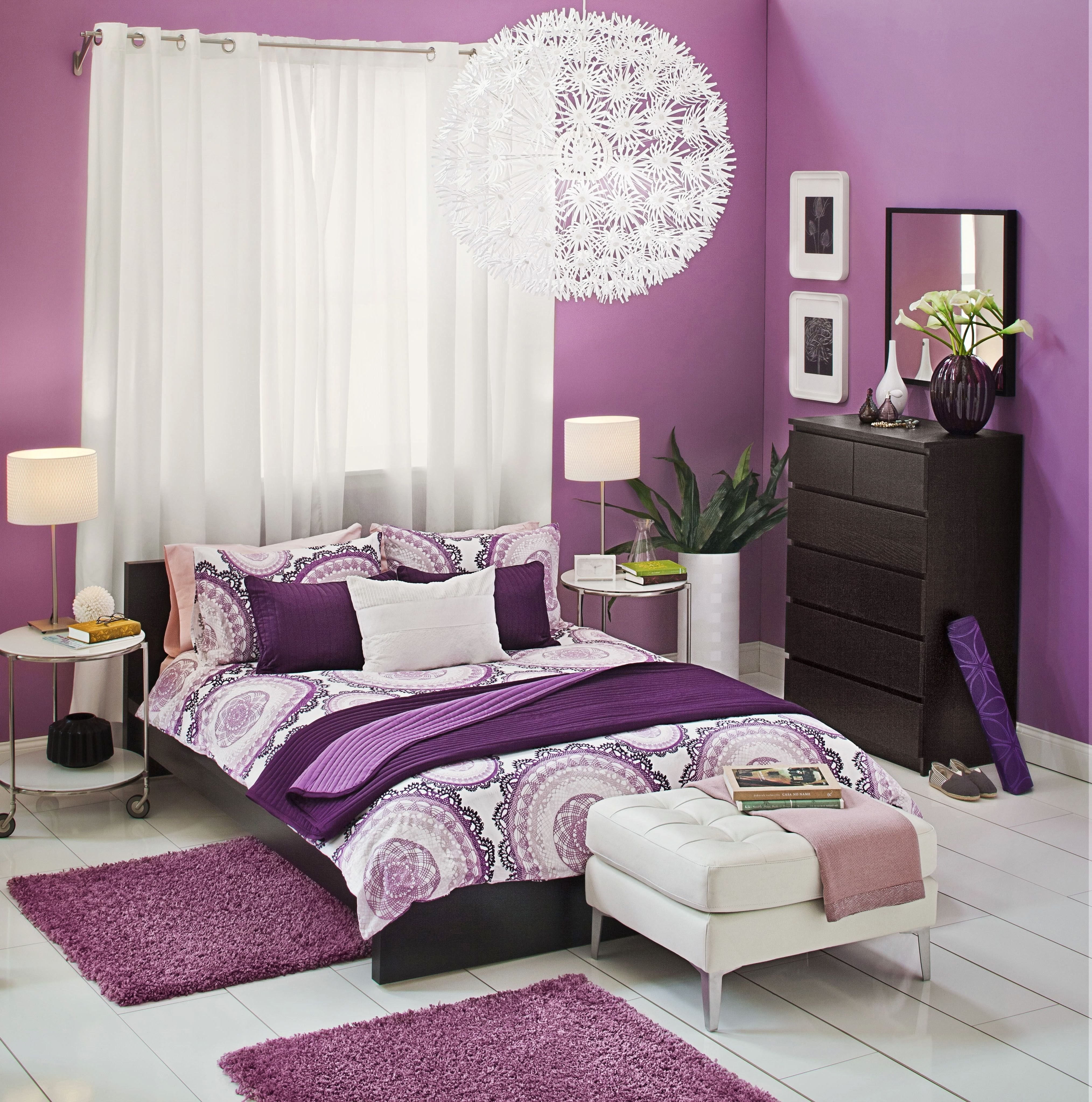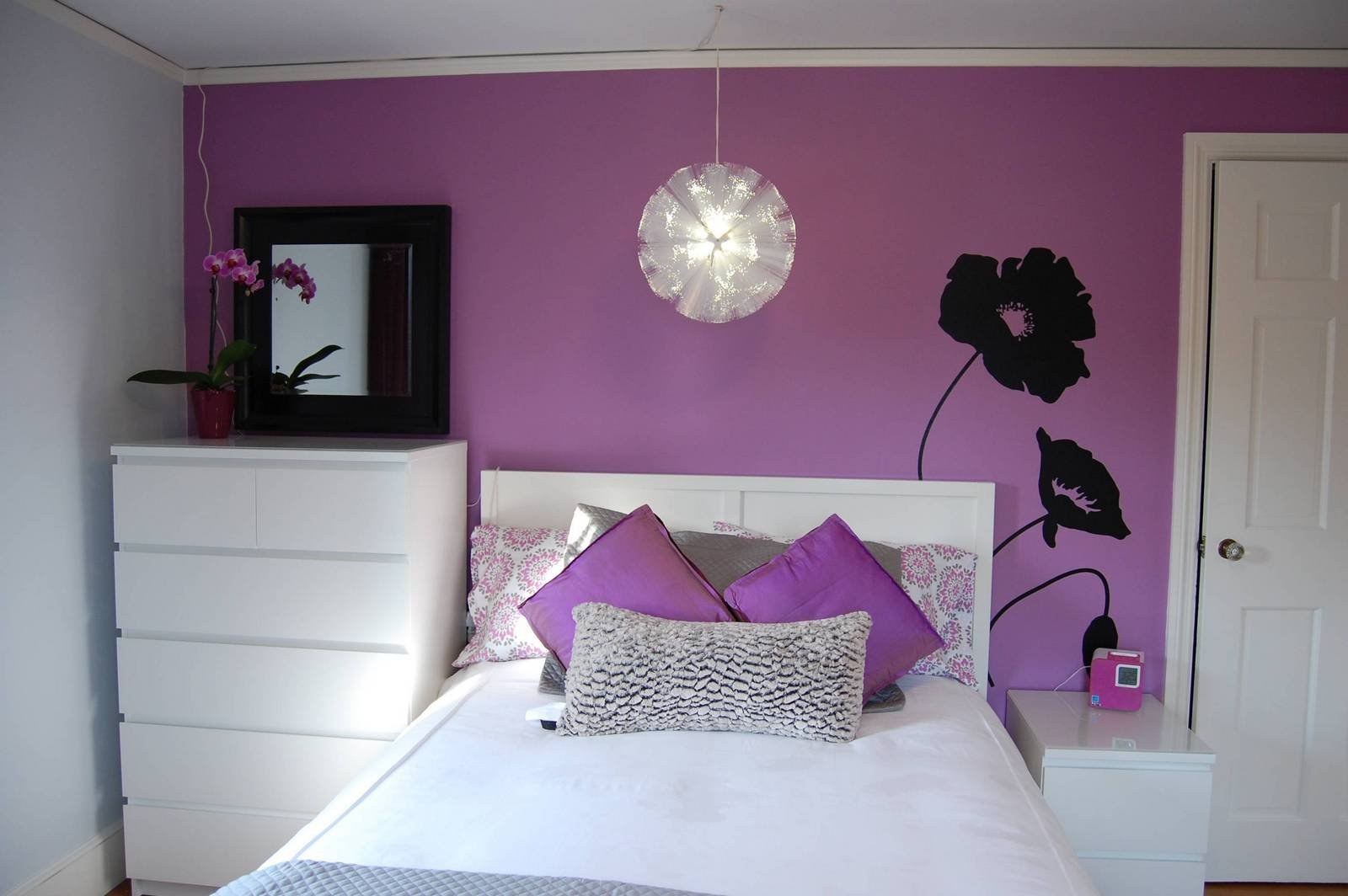 Сиреневые стены в спальне