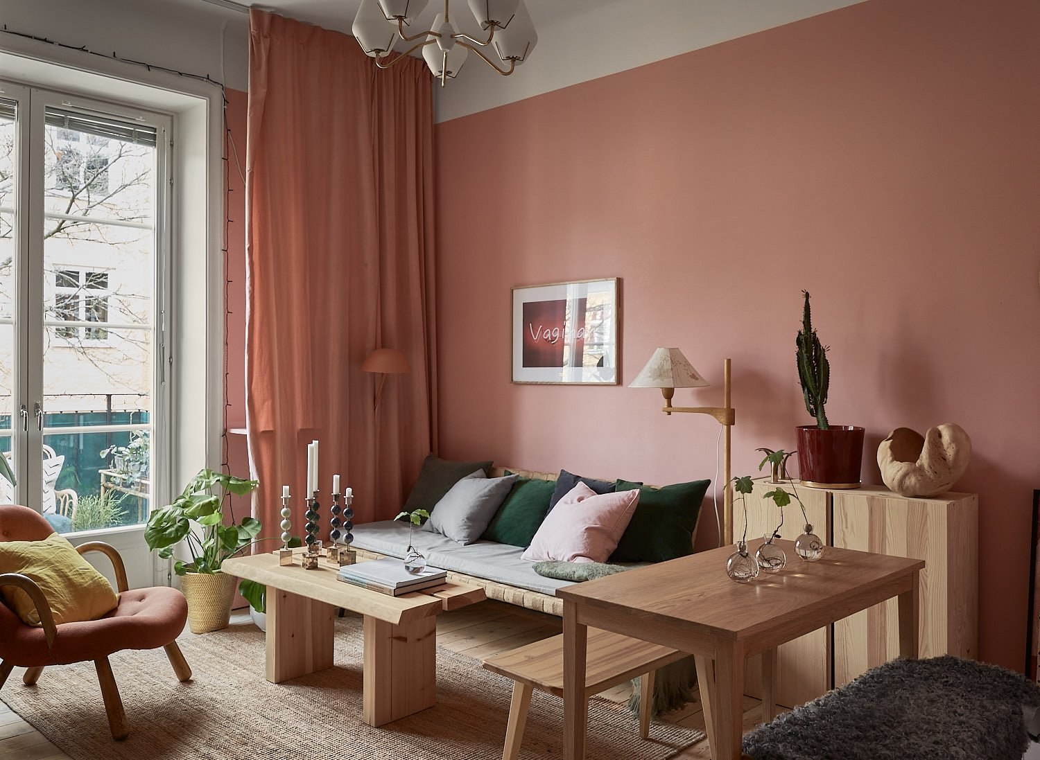 Сочетание розового и оранжевого в интерьере