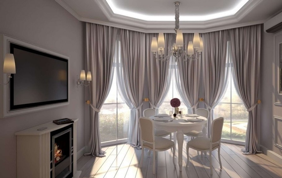 Шторы в эркере для гостиной