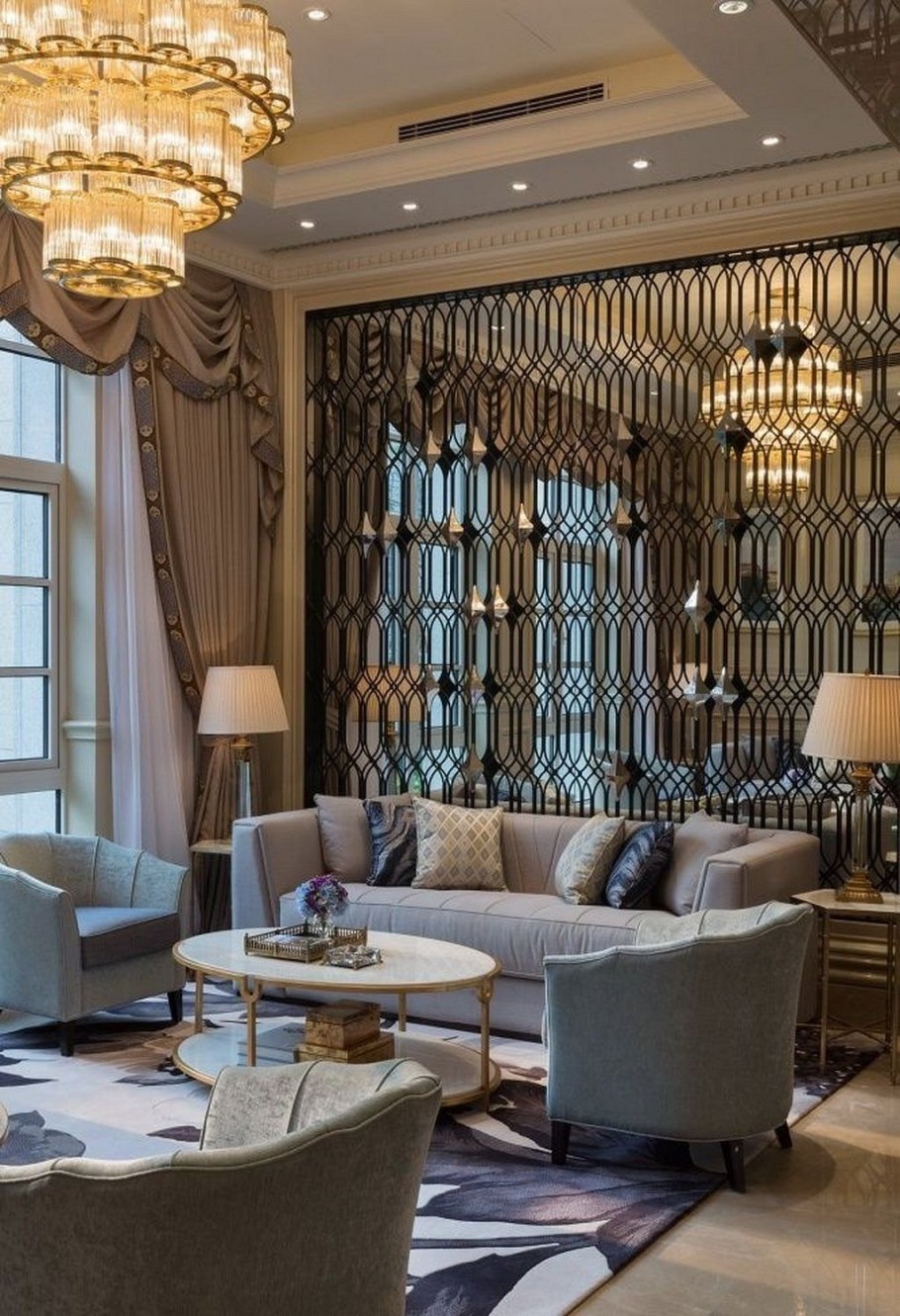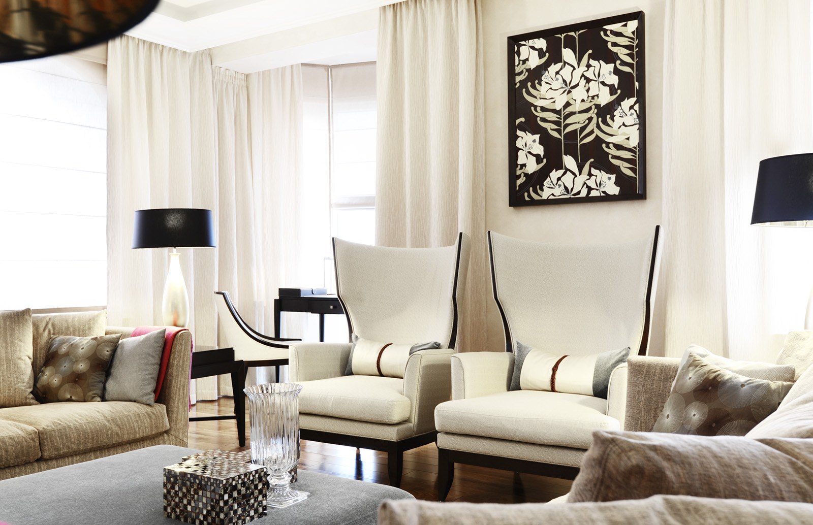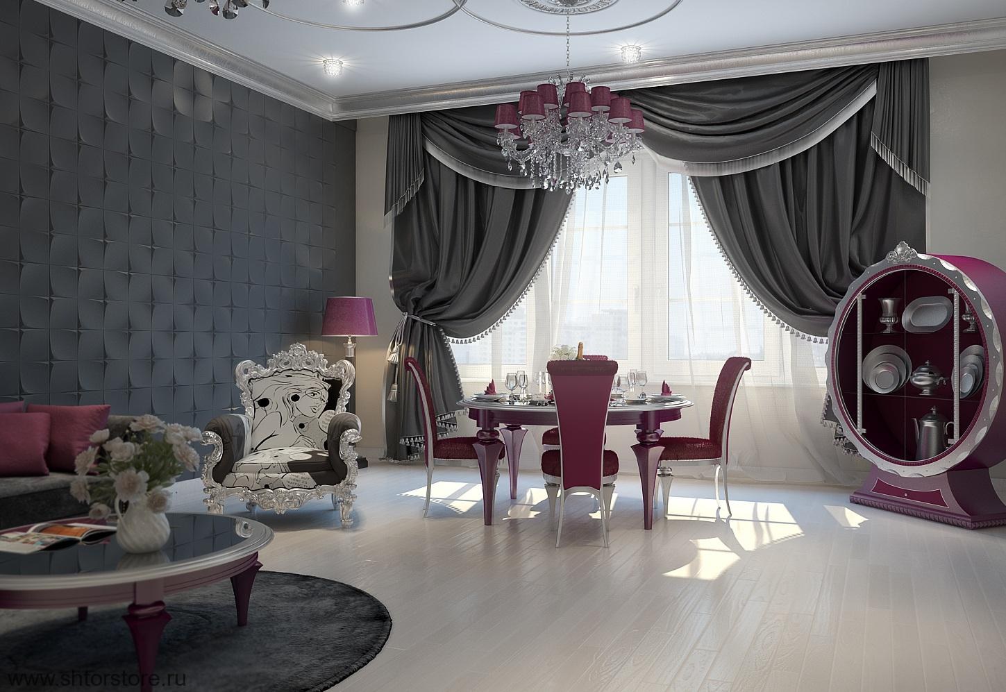 Шторы в стиле арт деко для гостиной в интерьере (51 фото)
