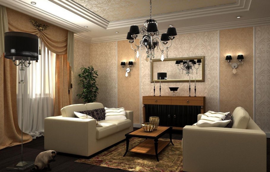 Обои в интерьере гостиной и их комбинирование