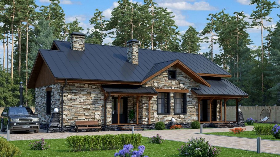 Дом 100 кв м проекты одноэтажных в стиле Шале