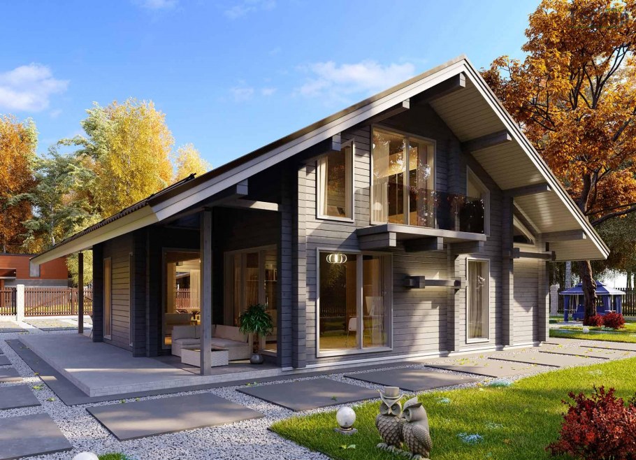 Дом 80 м2 одноэтажный из клееного бруса Шале