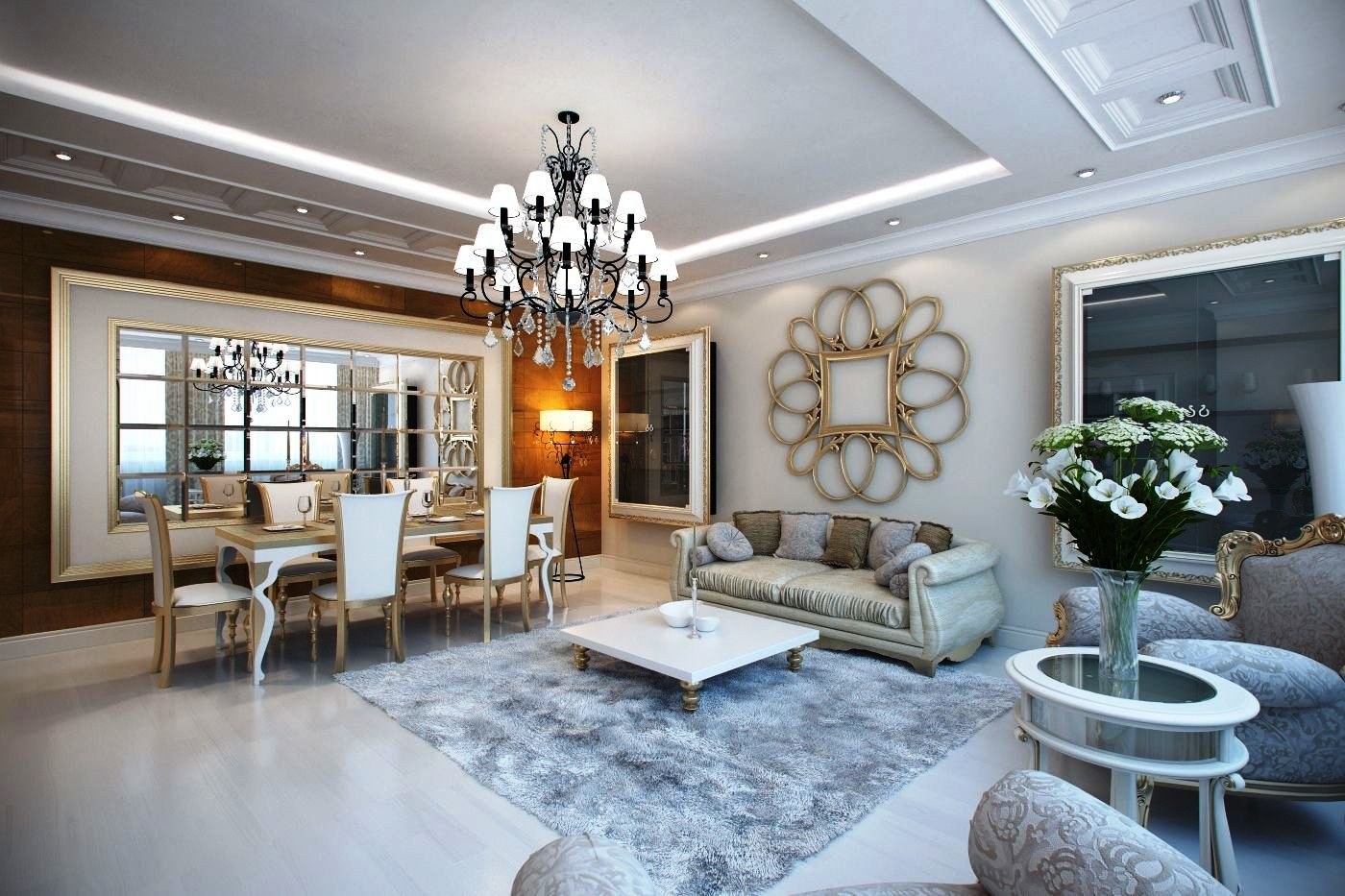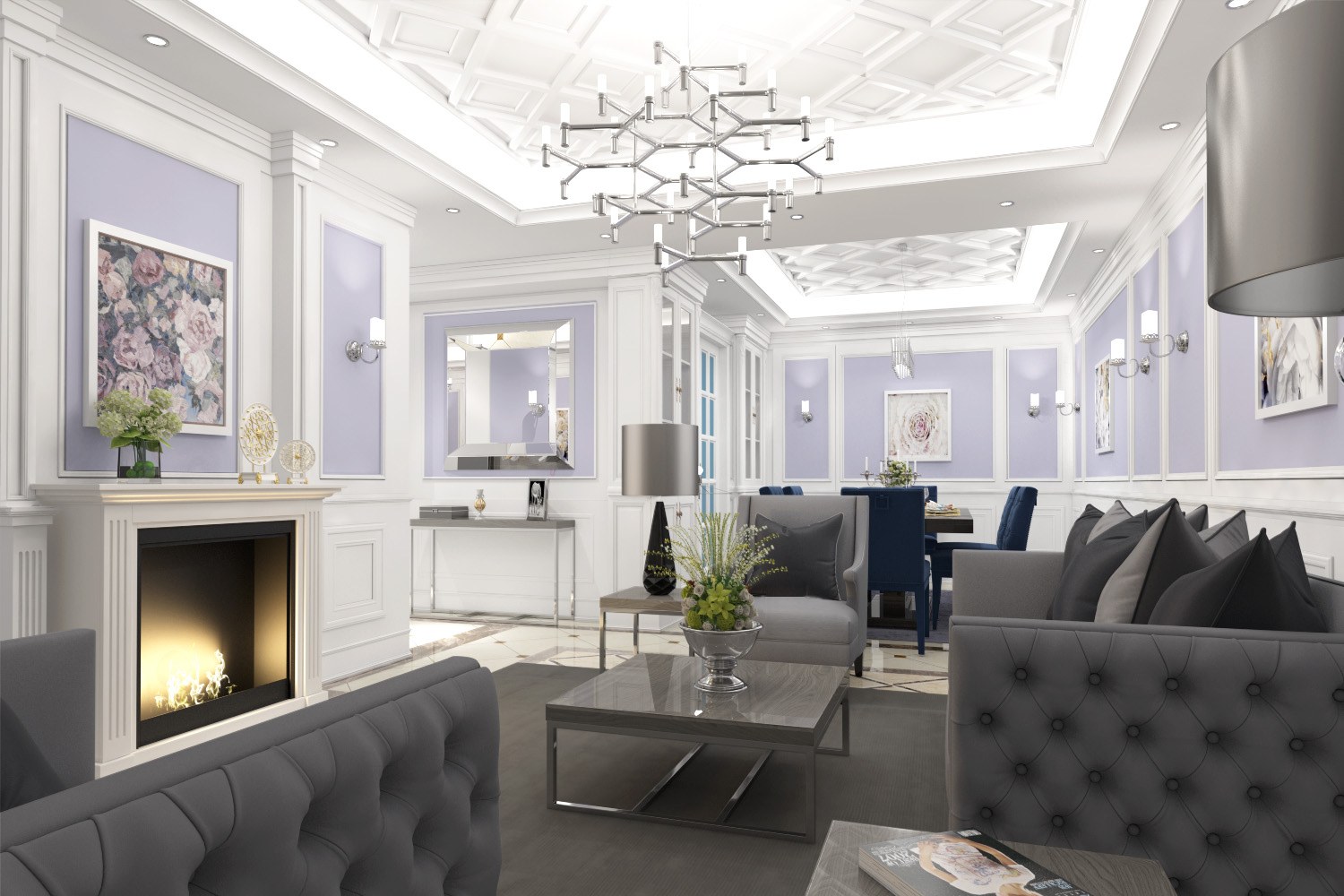 Большая гостиная в неоклассике
