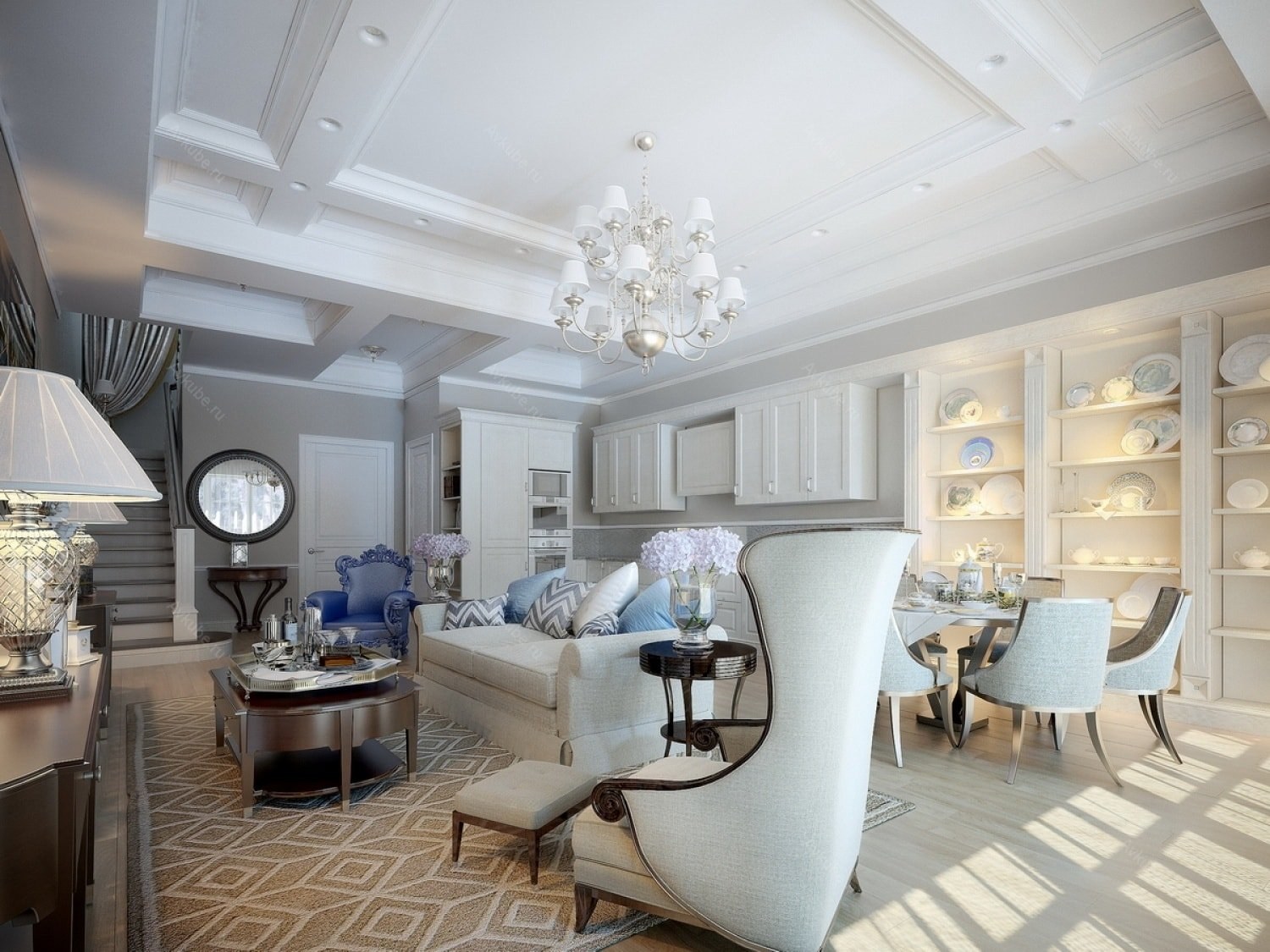Потолок 3d визуализация Неоклассика
