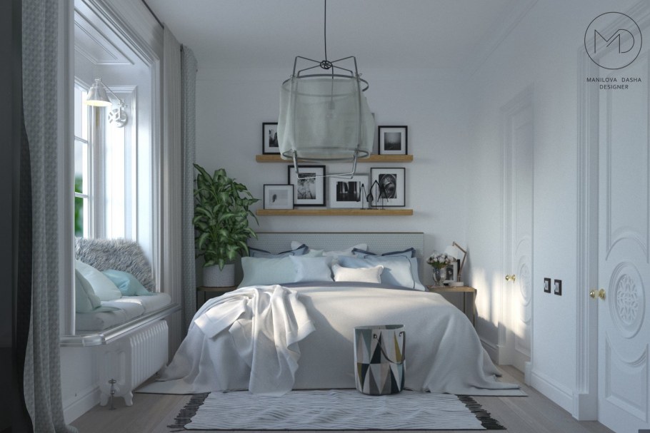 Интерьер спальни в скандинавском стиле 9кв