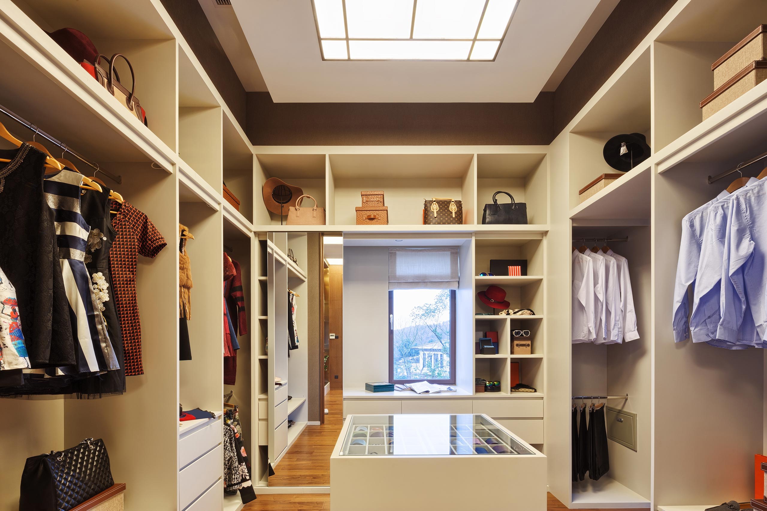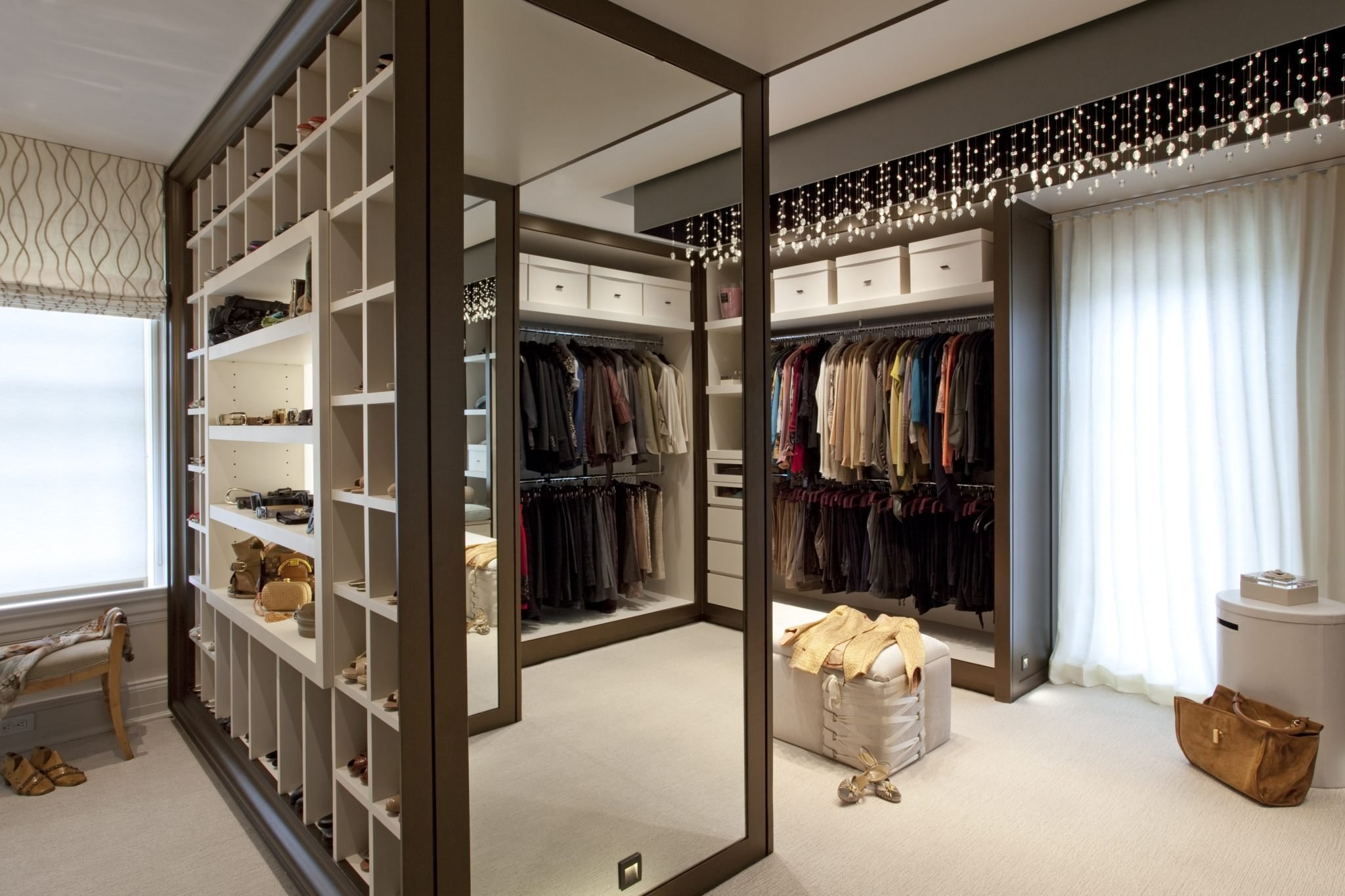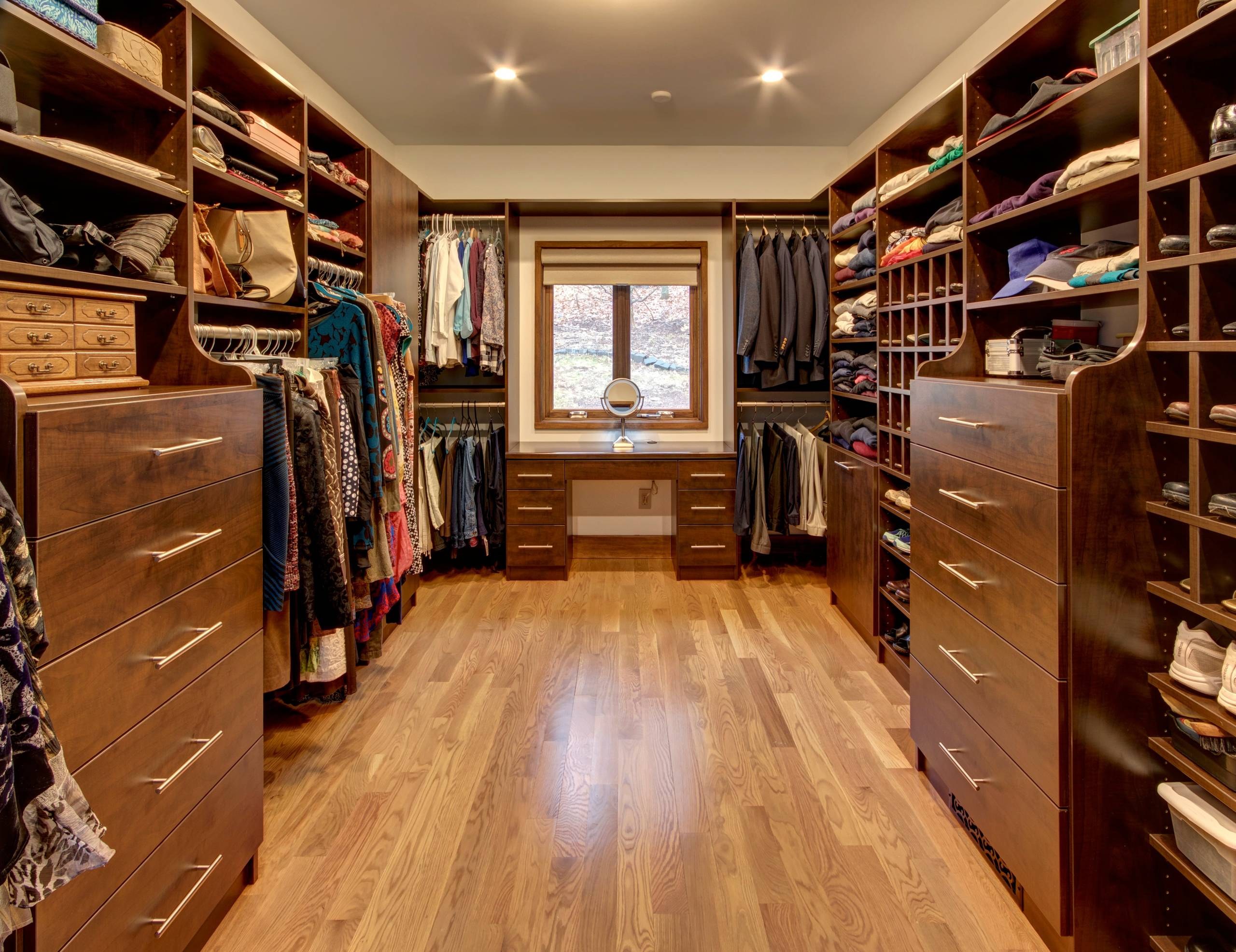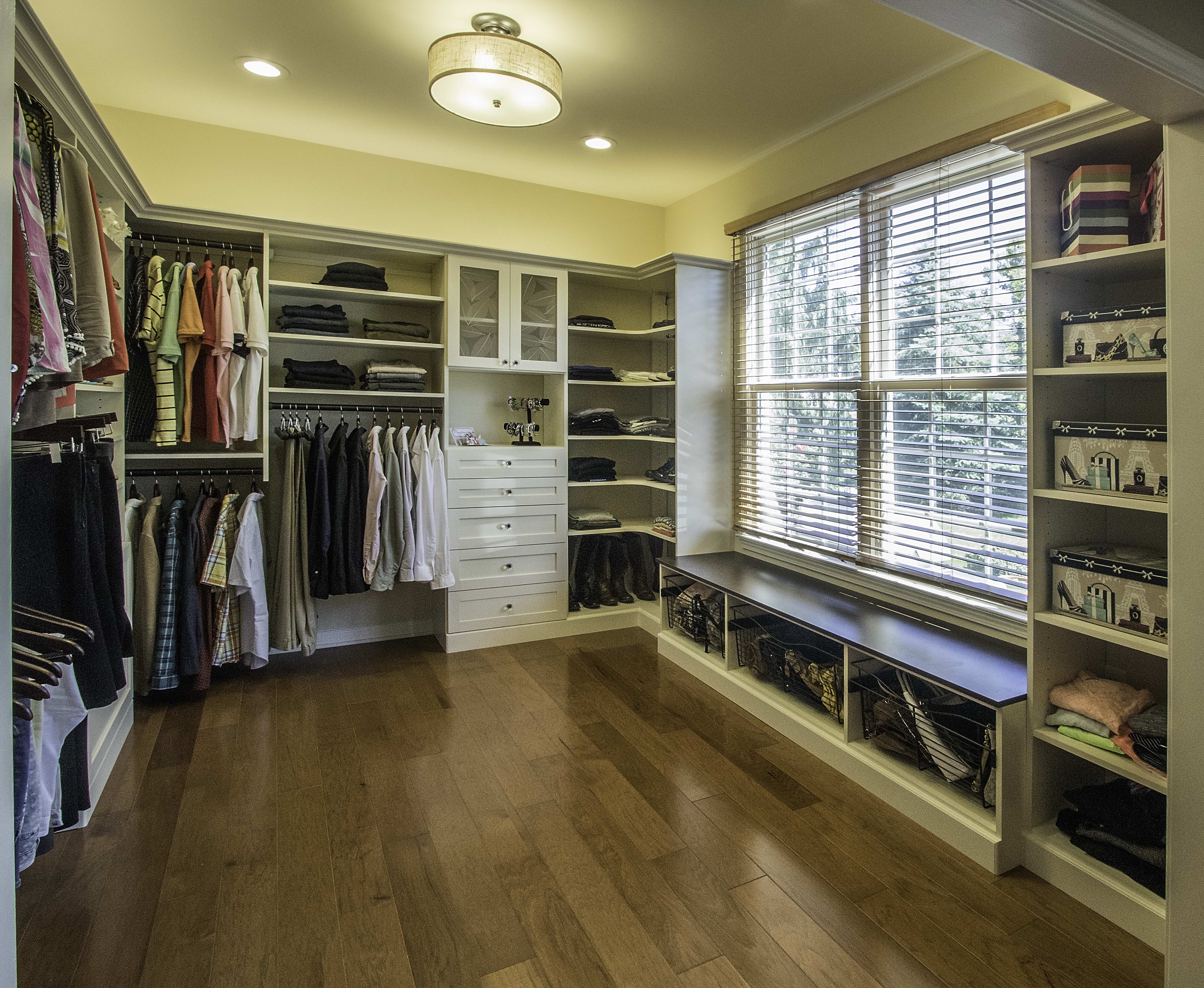 Большая гардеробная комната с окном (49 фото)