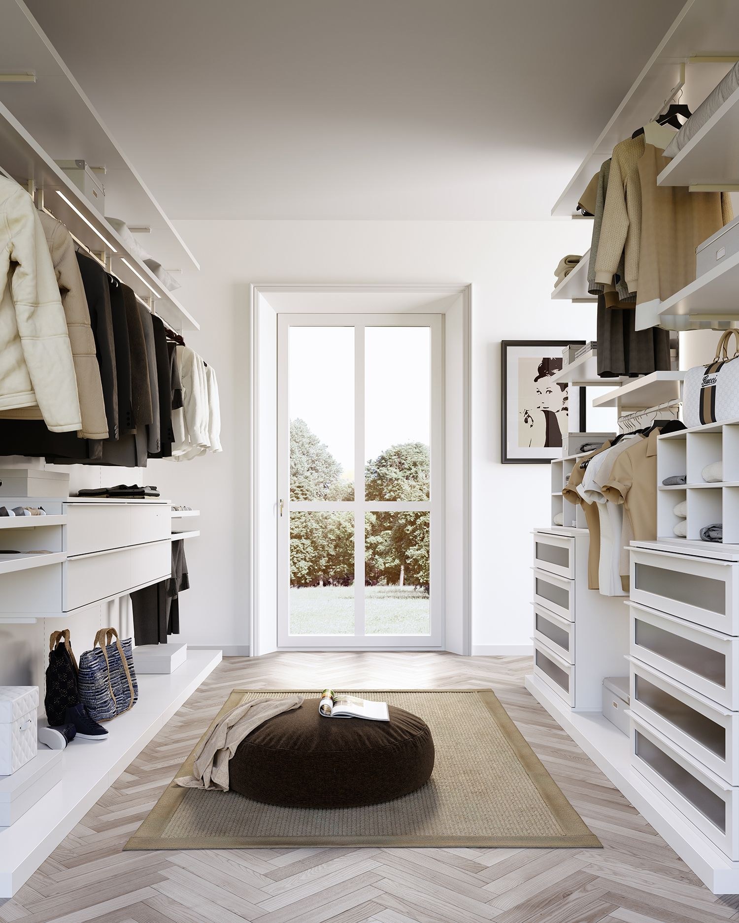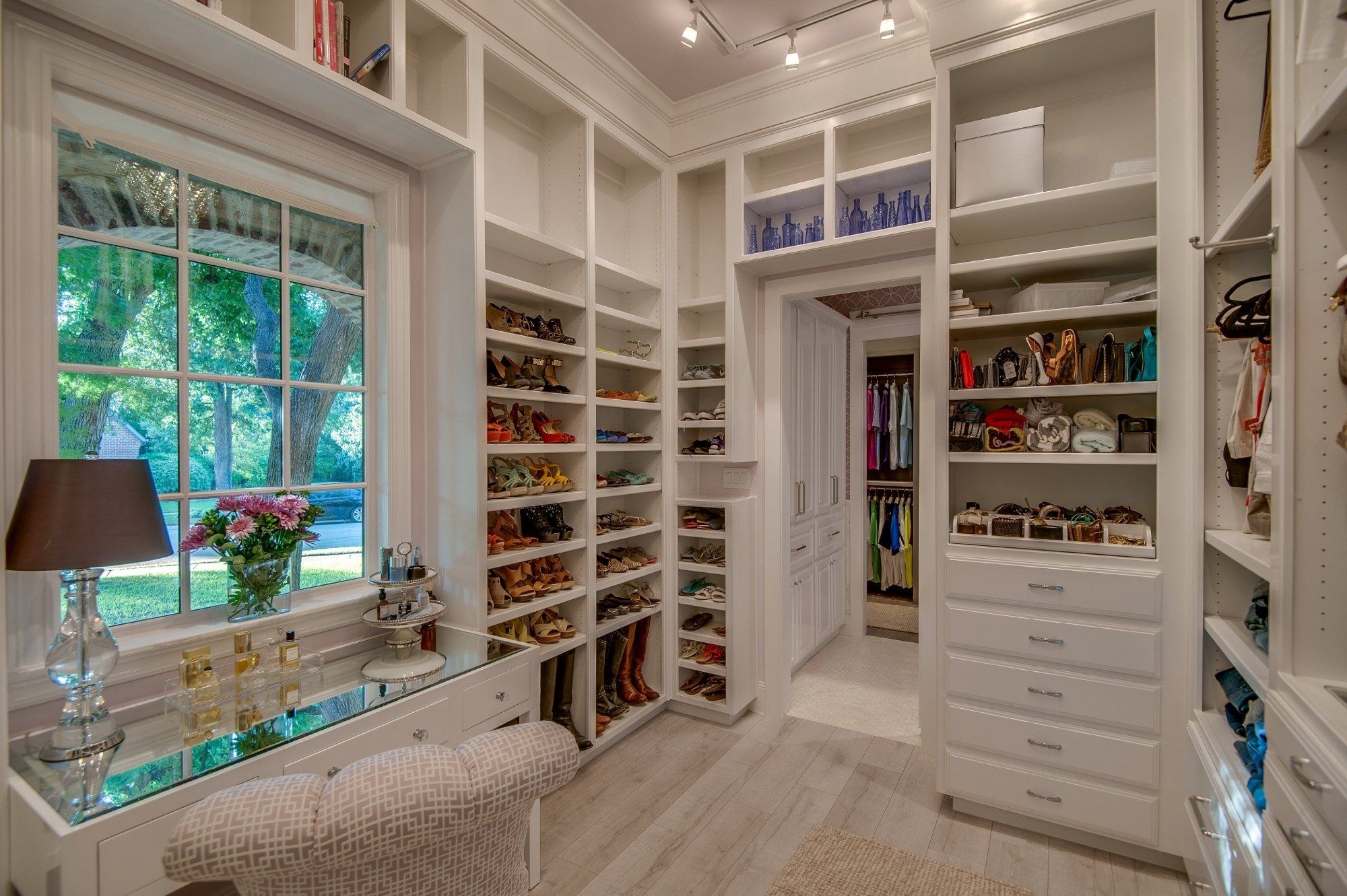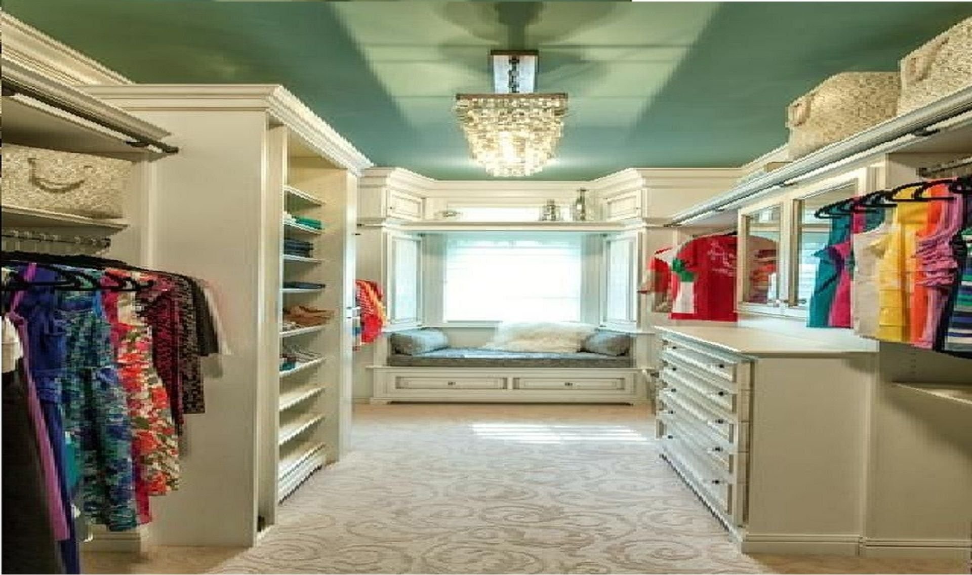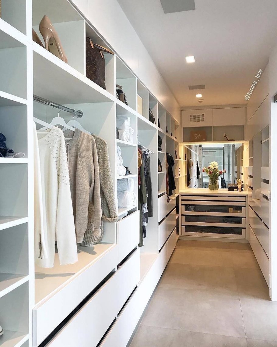 Большая гардеробная комната с окном (49 фото)