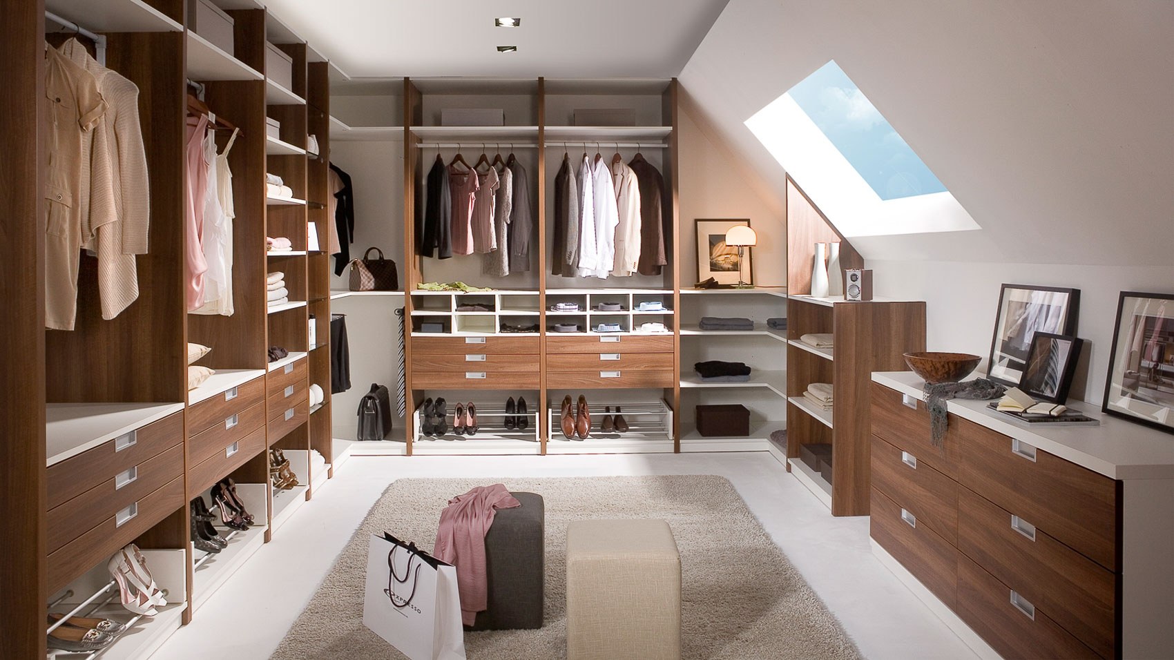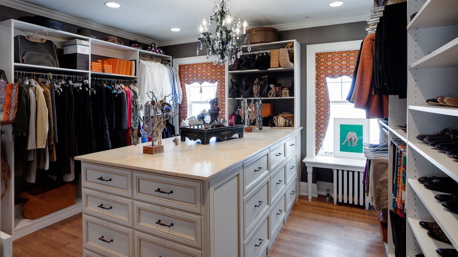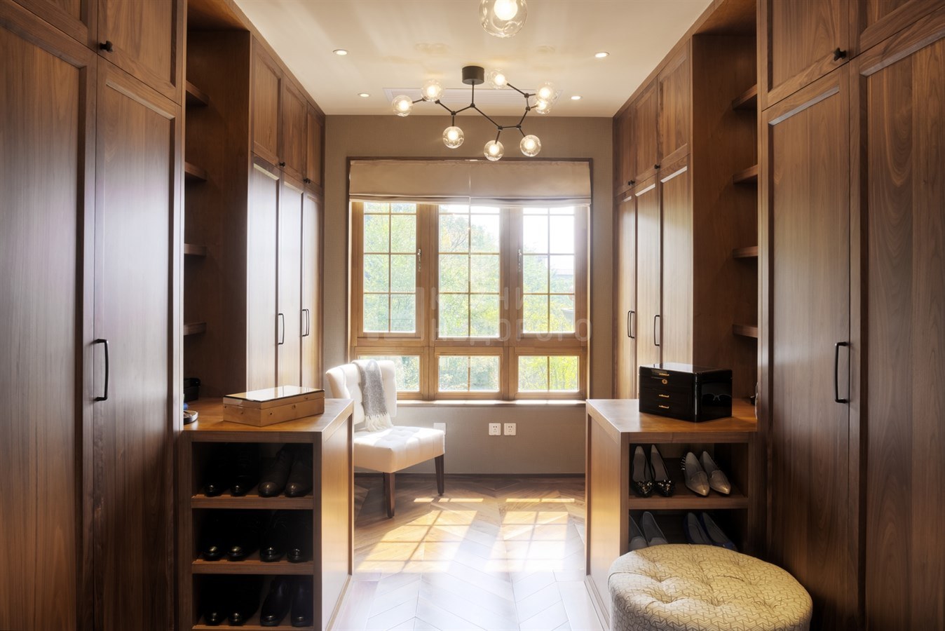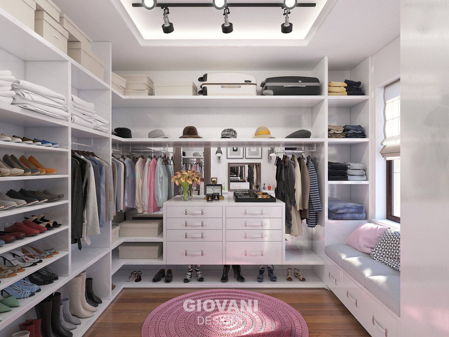 Большая гардеробная комната с окном (49 фото)
