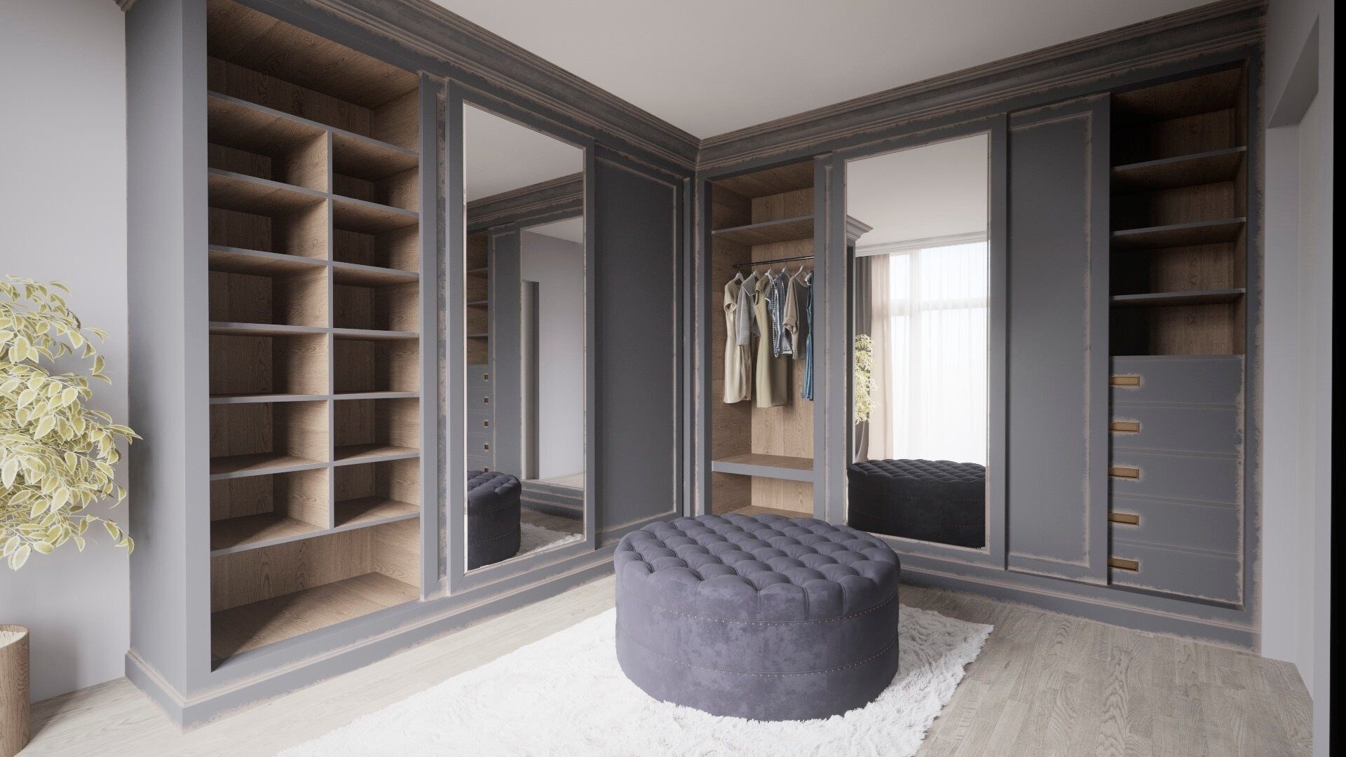 Большая гардеробная с окном