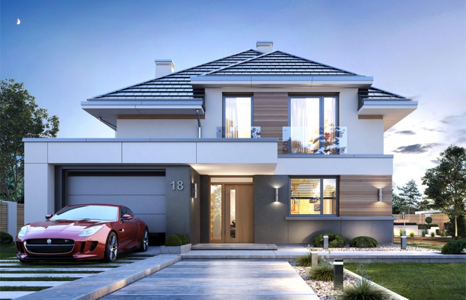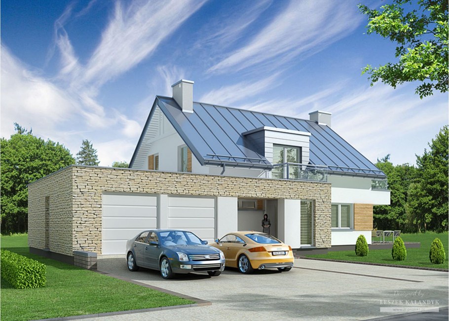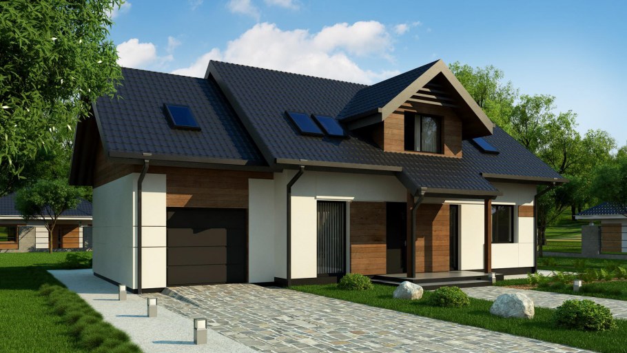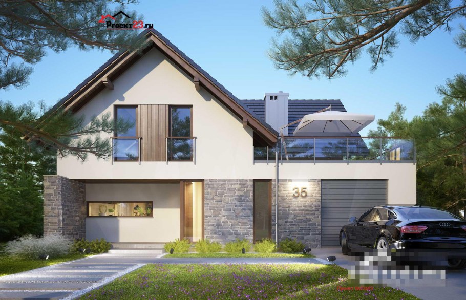 Современный мансардный дом с гаражом