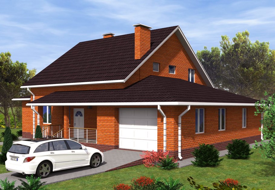 Кирпичный дом с мансардой и гаражом