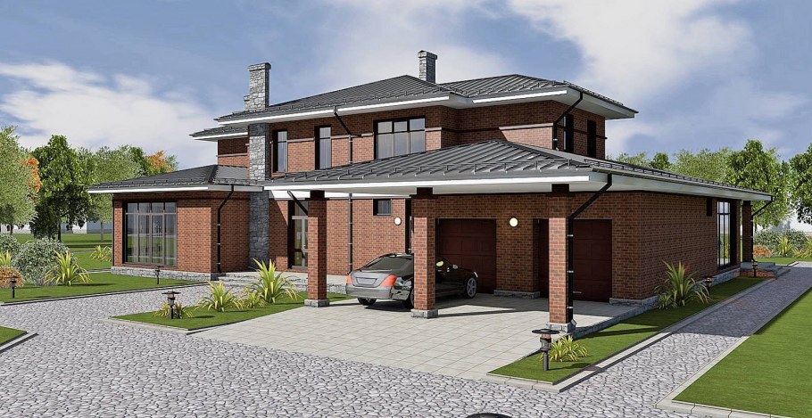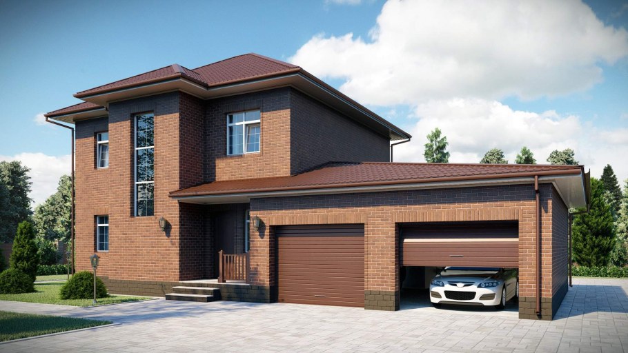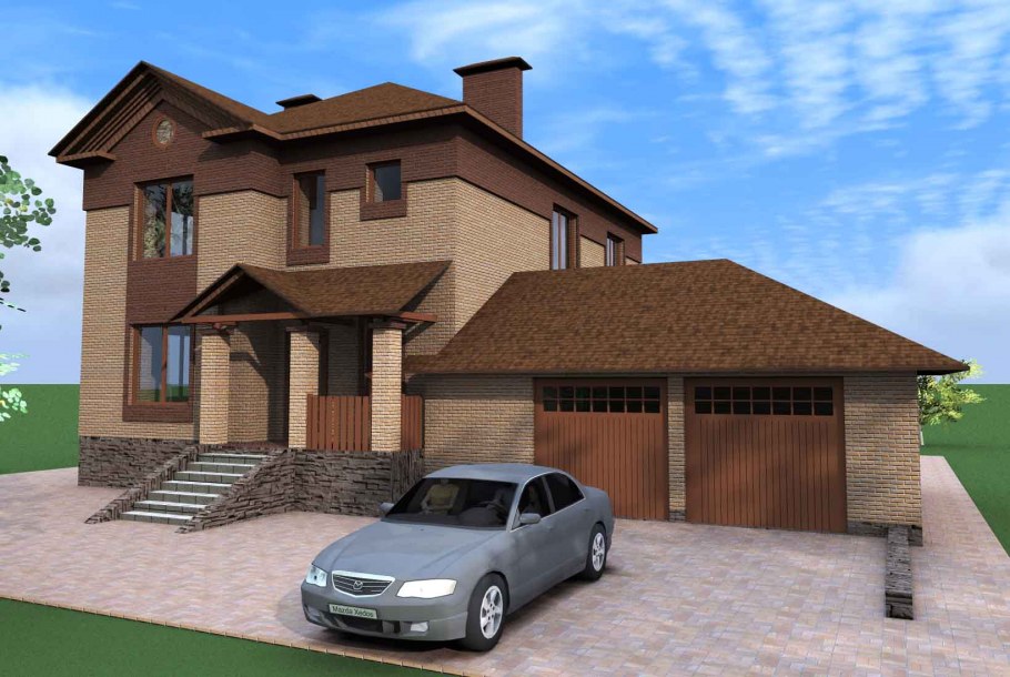 Двухэтажный дом с гаражом на две машины