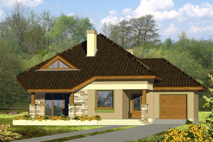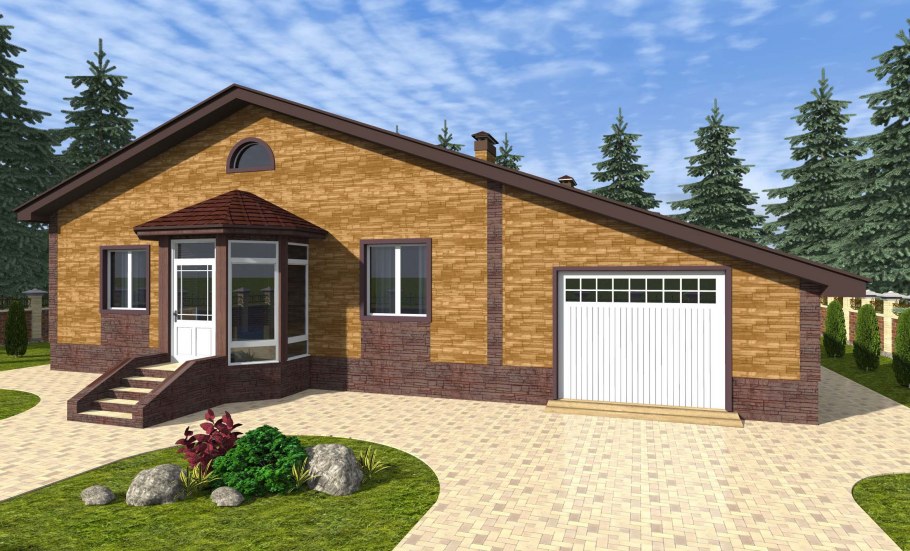 Одноэтажный дом с мансардой и гаражом
