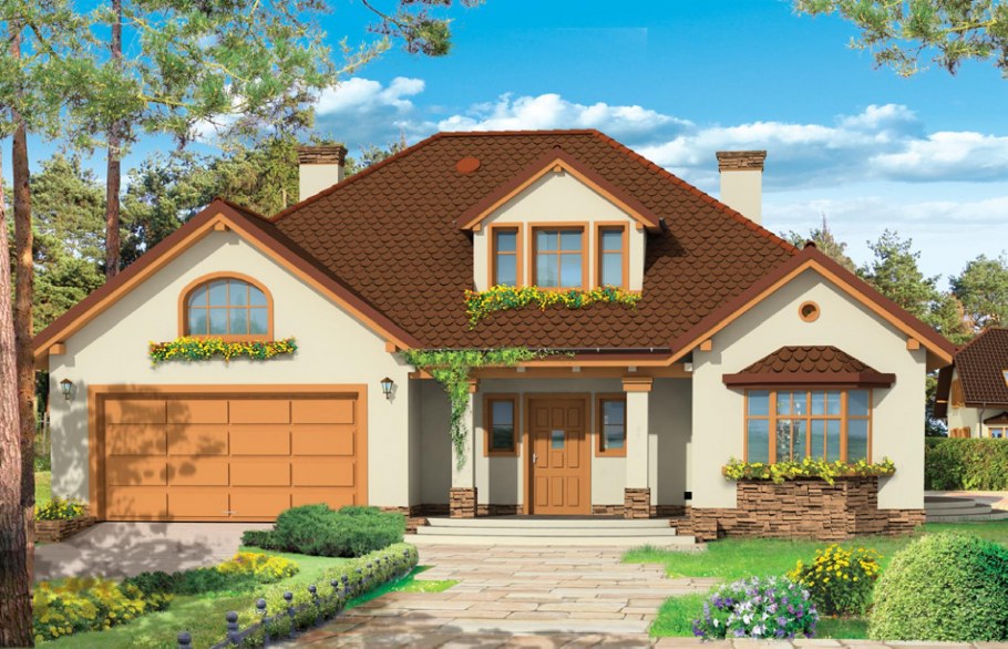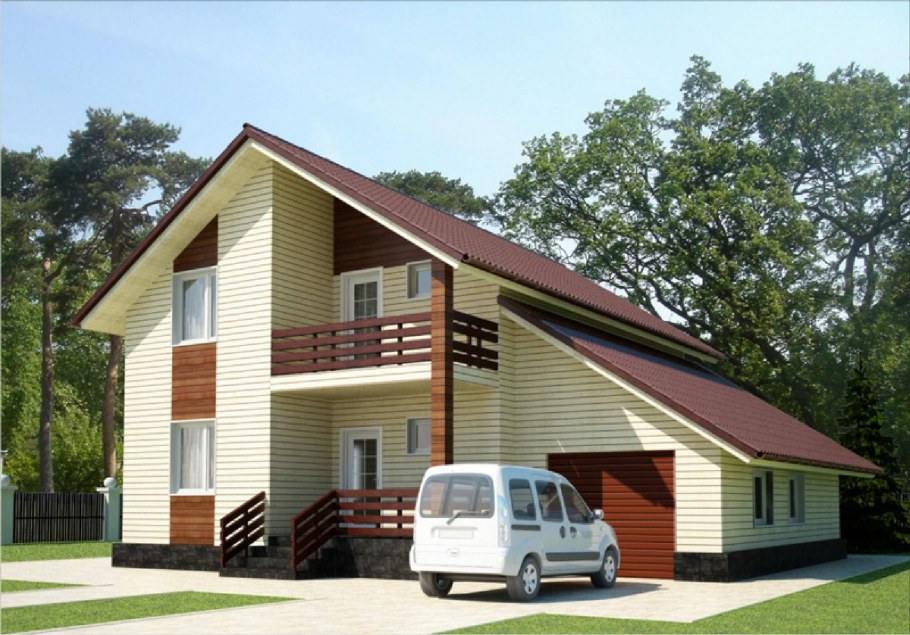 Дом с мансардой и гаражом под одной крышей