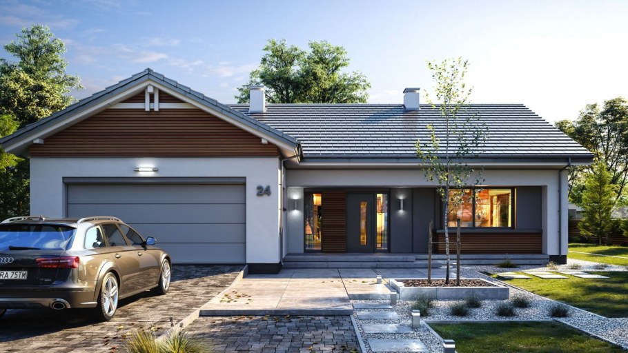Современный одноэтажный дом с гаражом