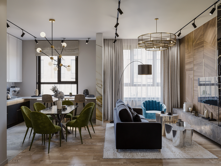 Интерьер кухни-гостиной в стиле арт деко