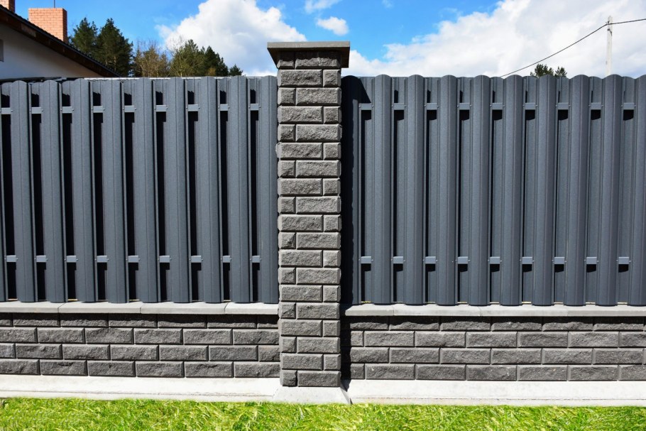 Забор кирпичные столбы RAL 8017 , профлист RAL 7024
