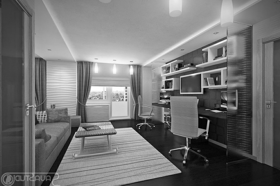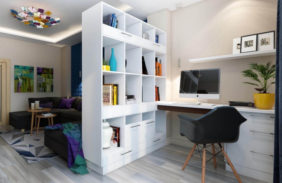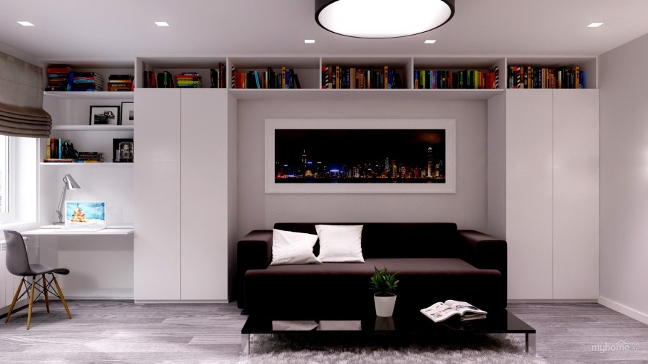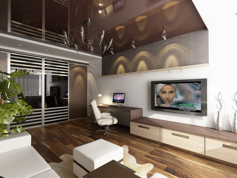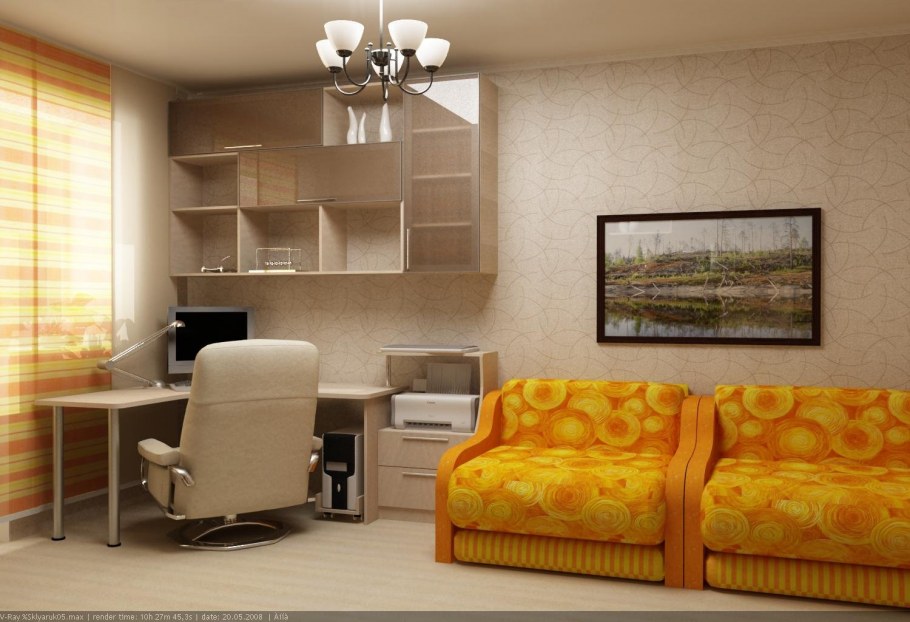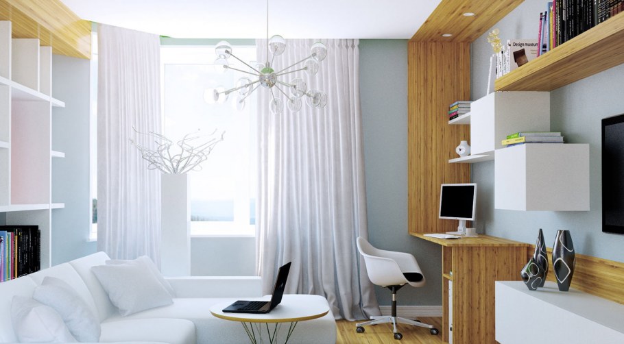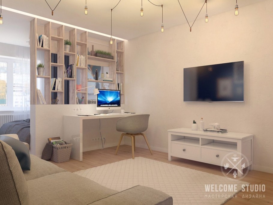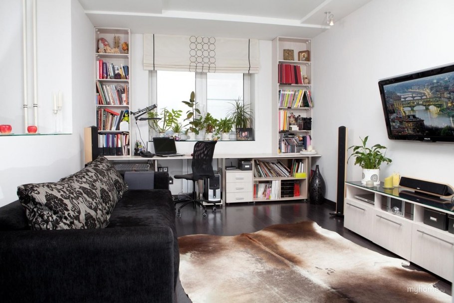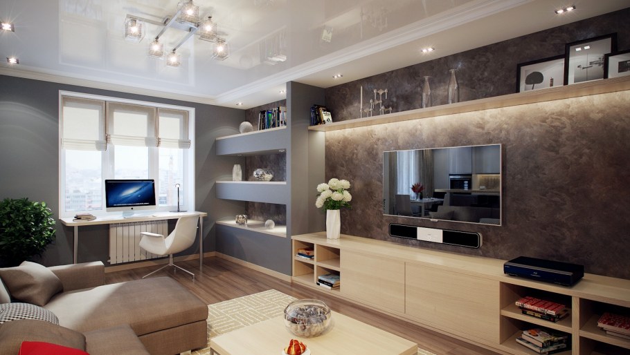 Дизайн однокомнатной квартиры с компьютерным столом (42 фото)