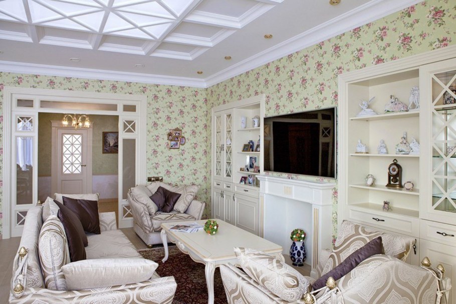 Дизайн гостиной в стиле Прованс в частном доме