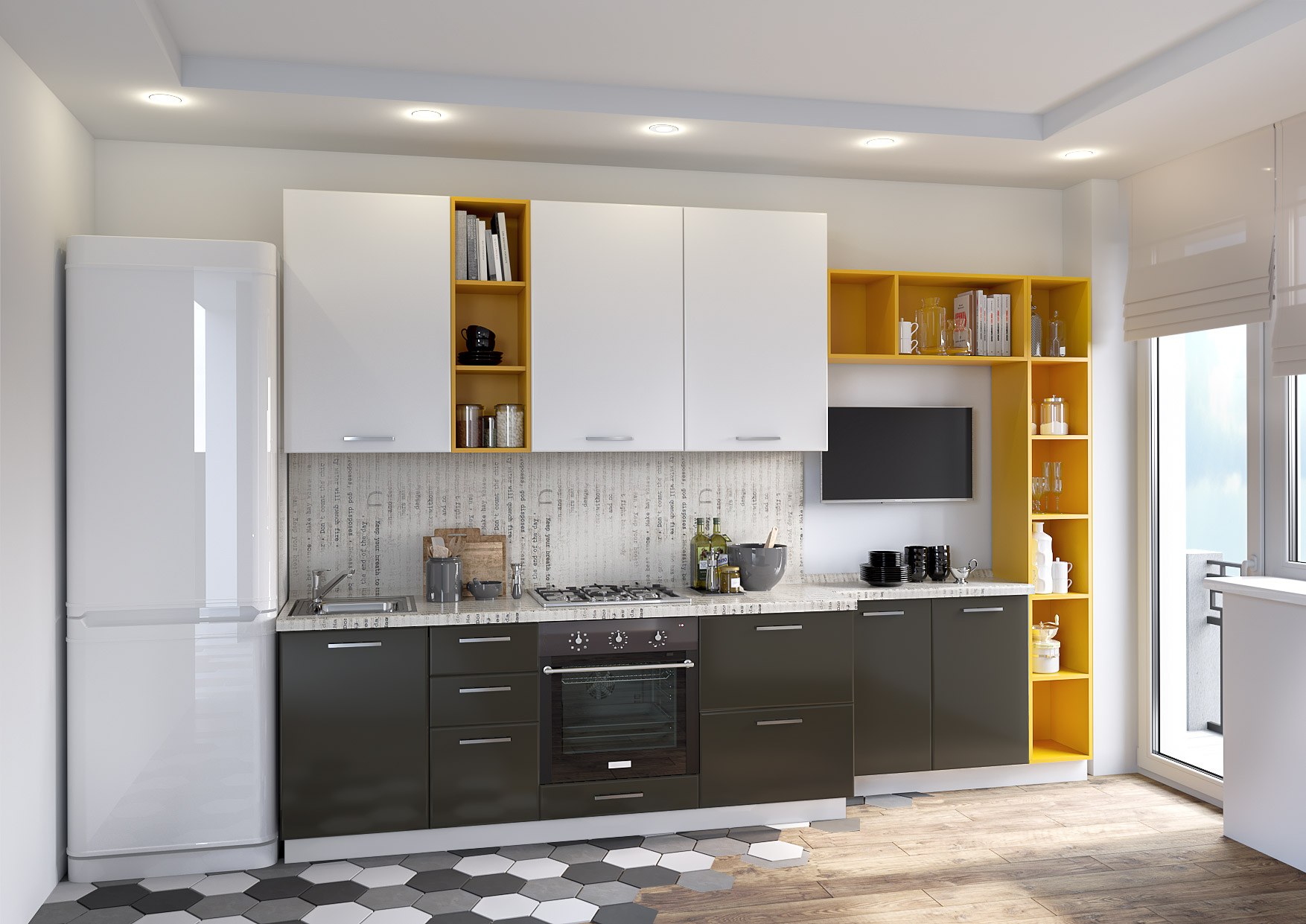 Кухонный гарнитур фэнтези белый универс, Лайнс 2,4м