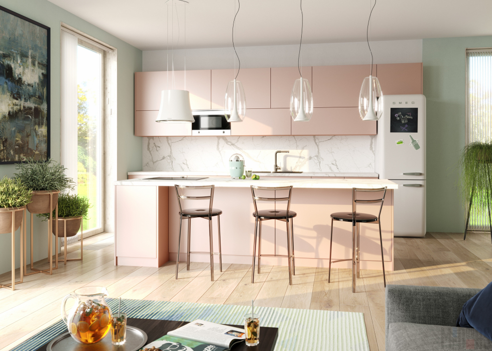 Кухня пудрового цвета