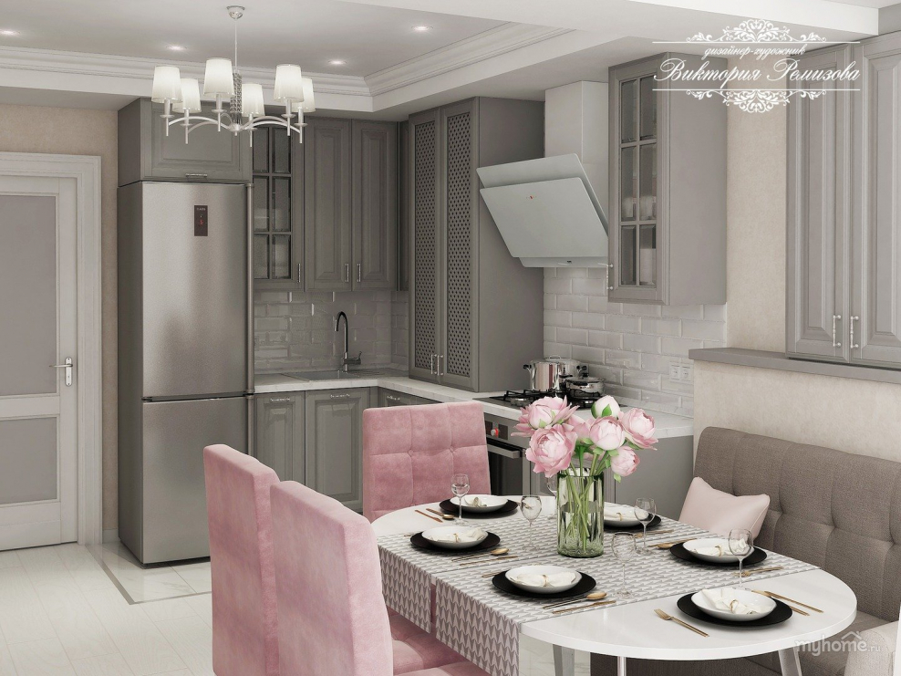 Интерьер кухни в серо розовых тонах