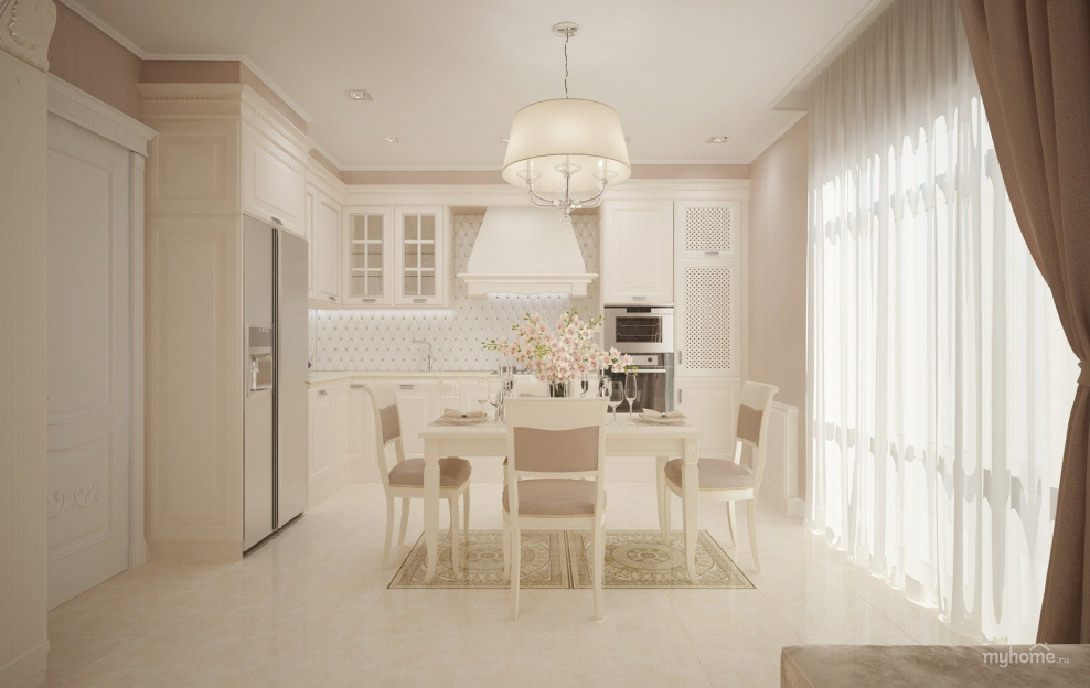 Интерьер кухни в ванильных тонах