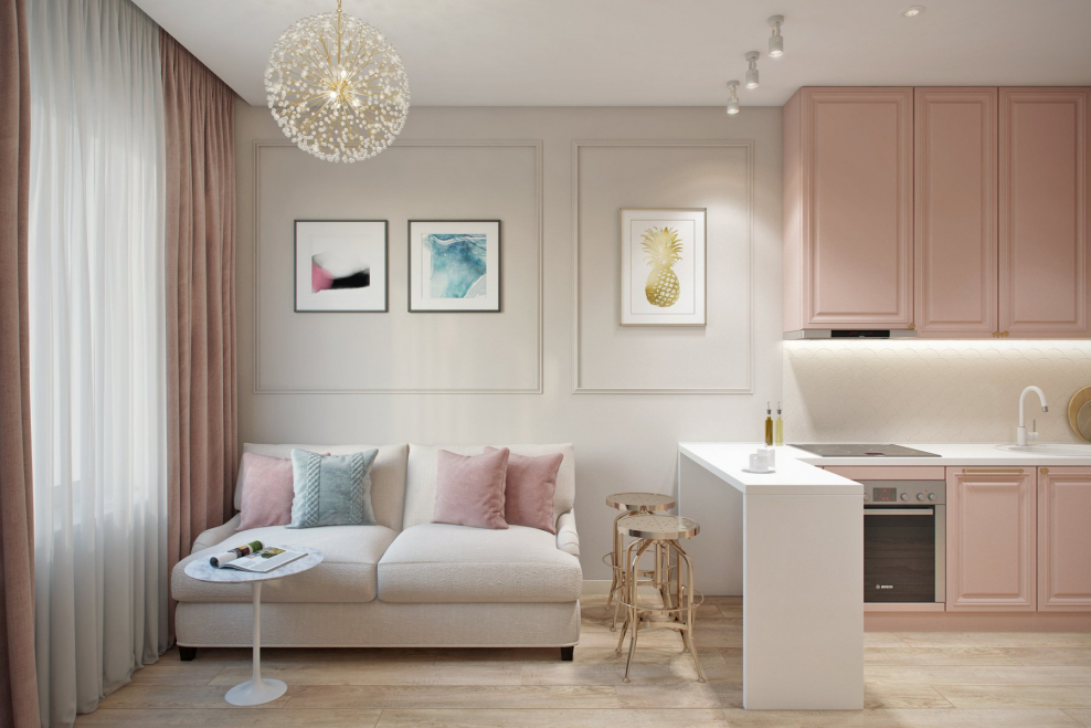 Маленькая квартира в пудровых тонах