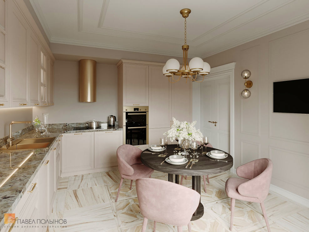 Пыльно розовый в интерьере кухни