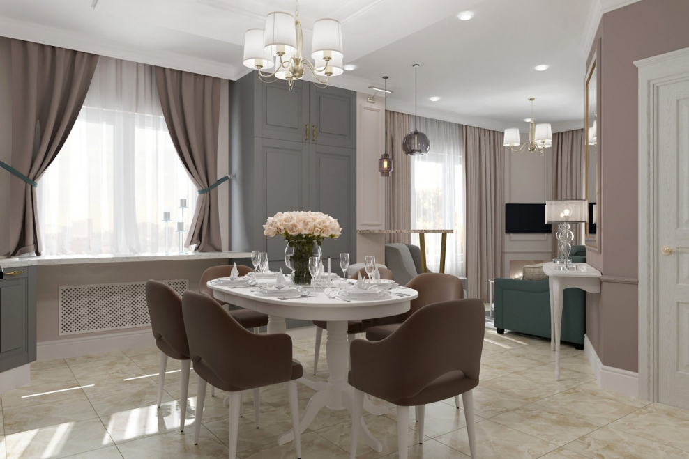 Гостиная совмещенная с кухней в стиле Неоклассика