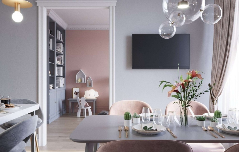 Интерьер в пудровых тонах