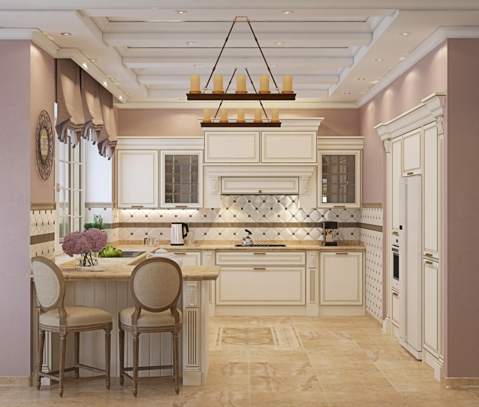 Пудровые стены на кухне (39 фото)