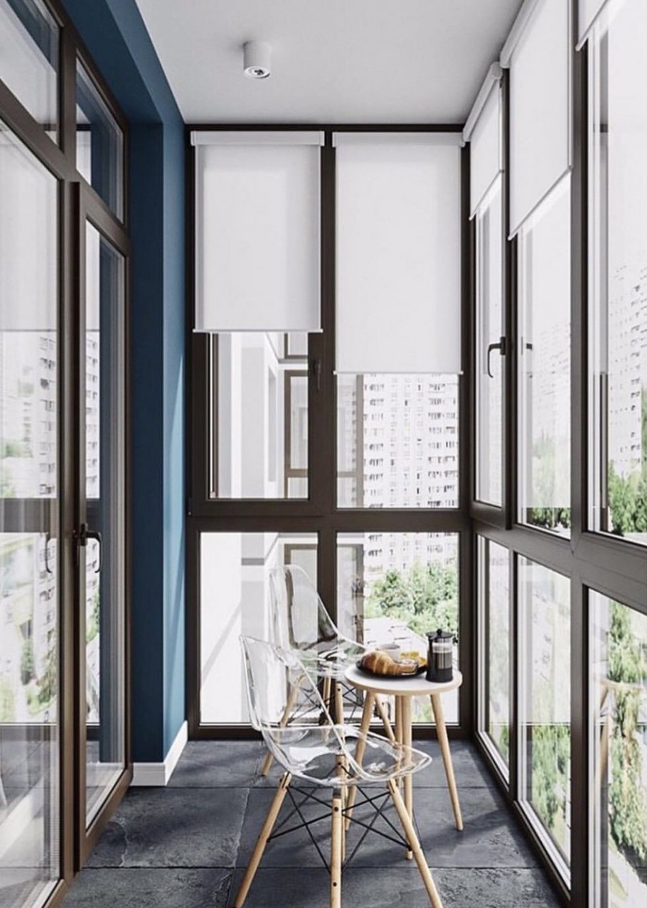 Барная стойка на балконе с панорамным остеклением в интерьере (42 фото)