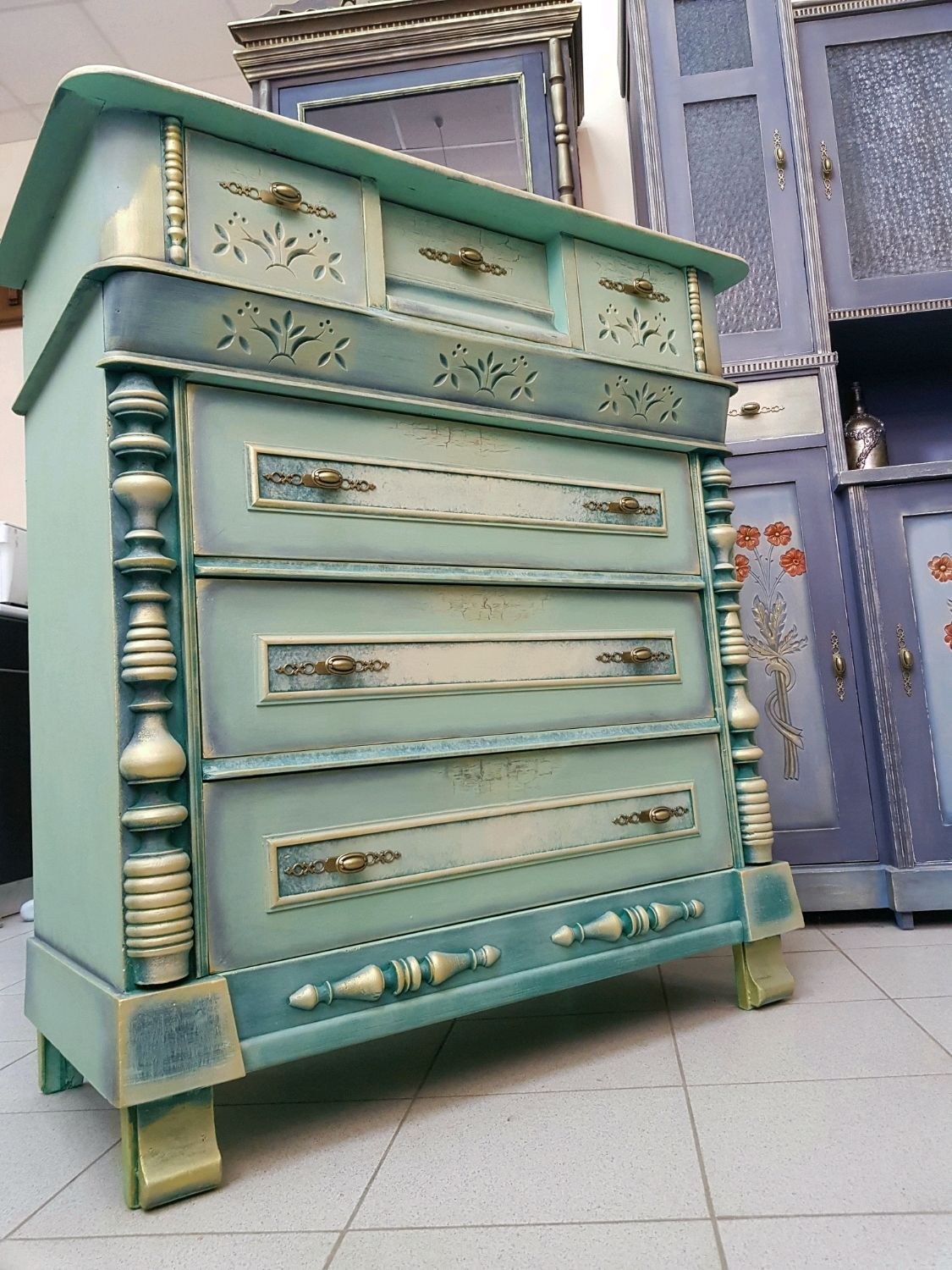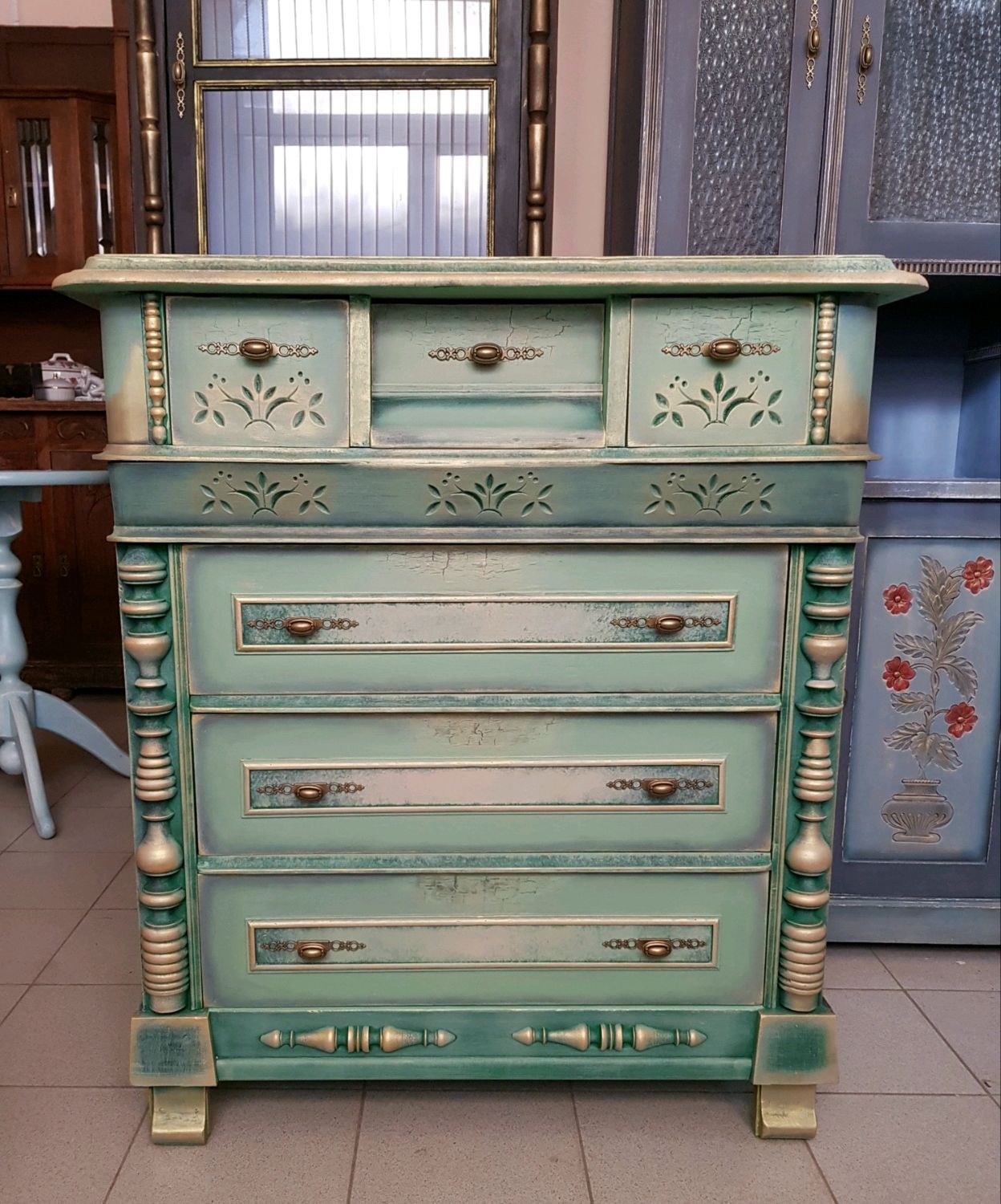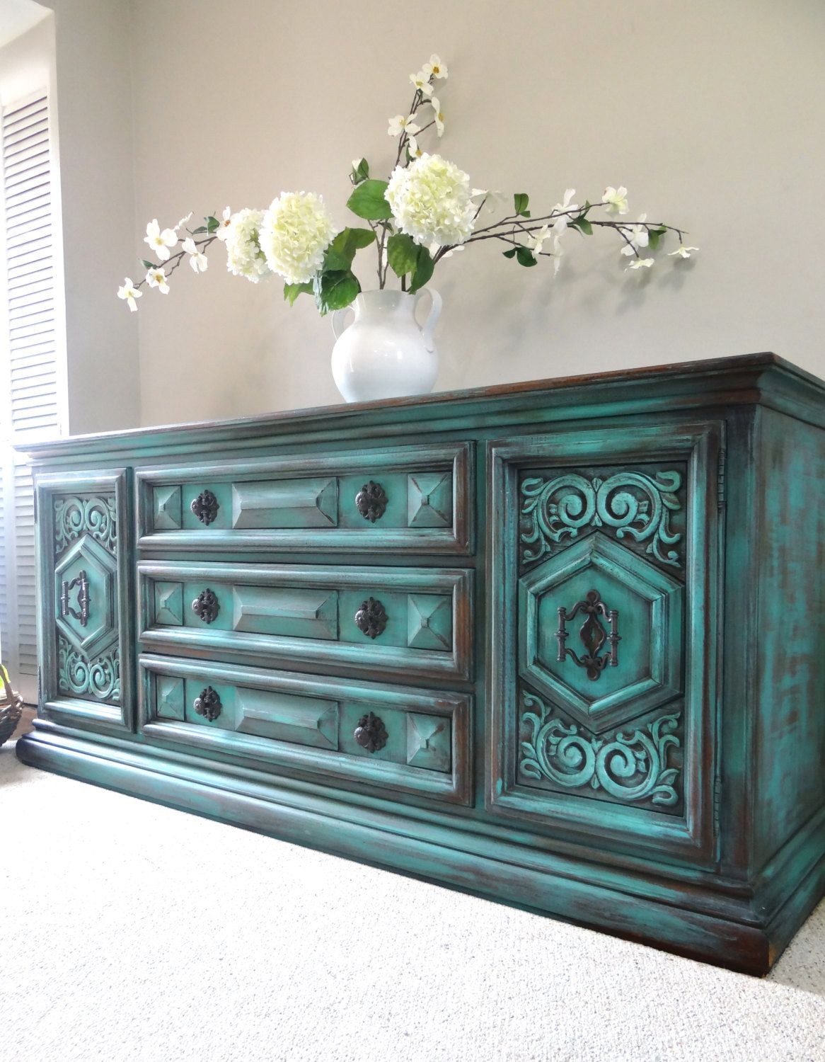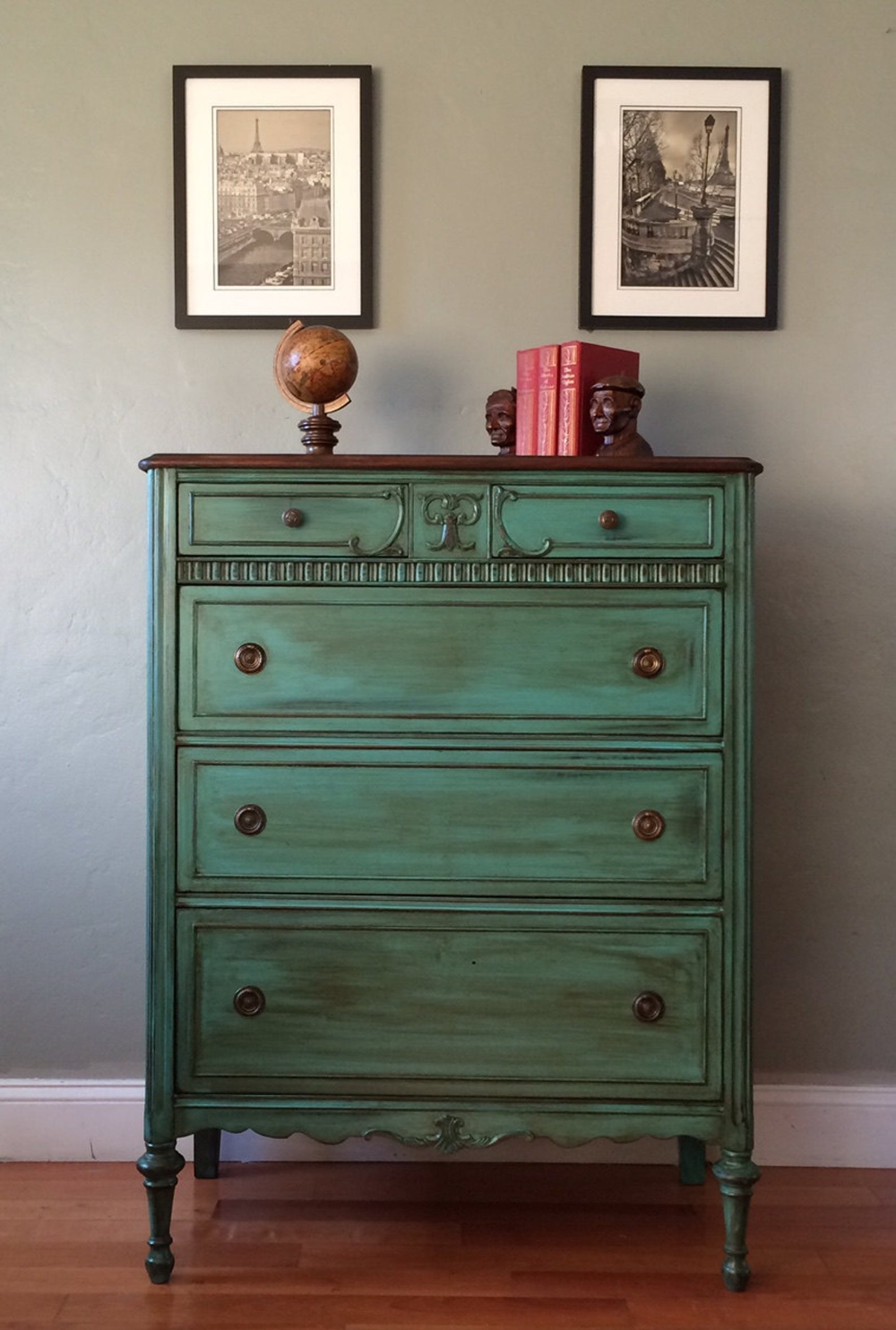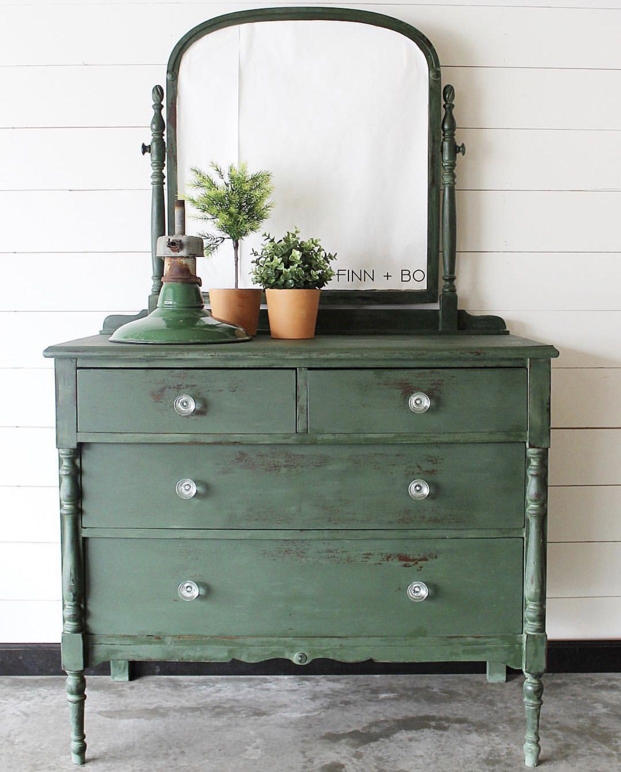 Старинный комод зеленого цвета в интерьере (61 фото)