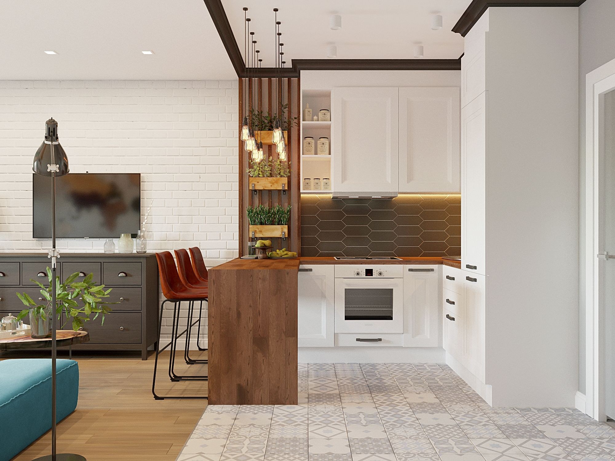 Декоративная перегородка между кухней и гостиной