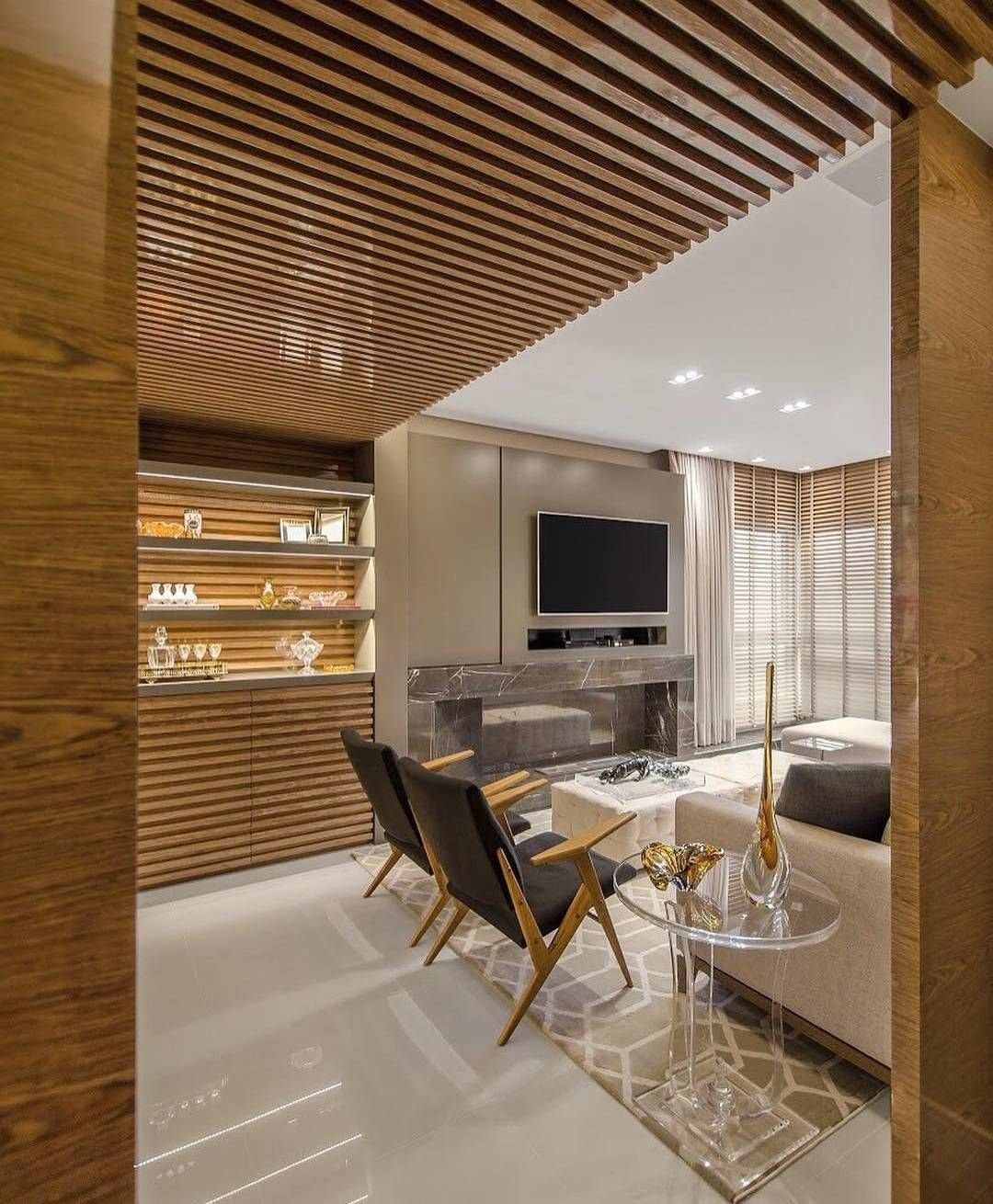 Деревянные рейки в интерьере гостиной