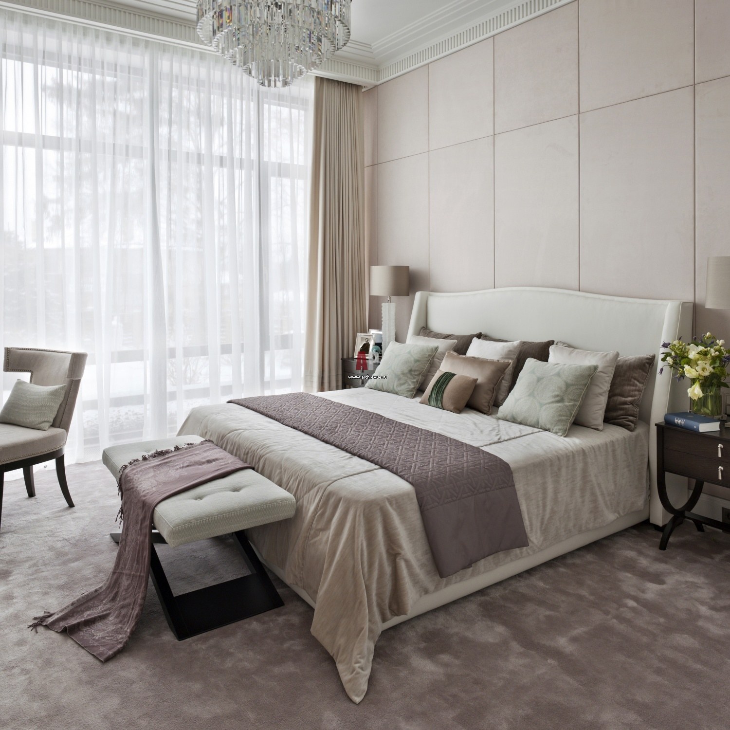 Стиль классический в интерьере бежево_сиреневый кровать