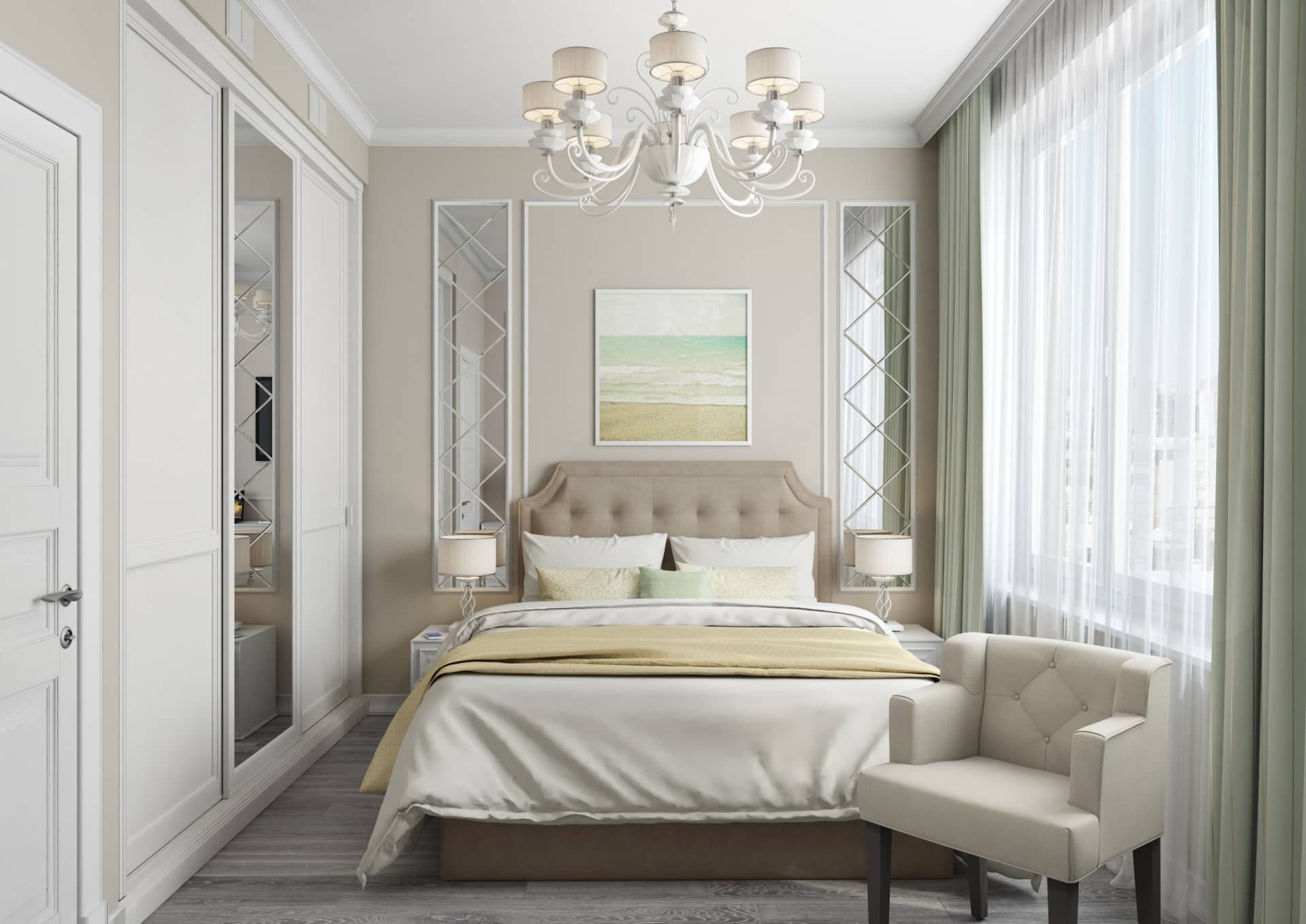 Классическая спальня в светлых тонах
